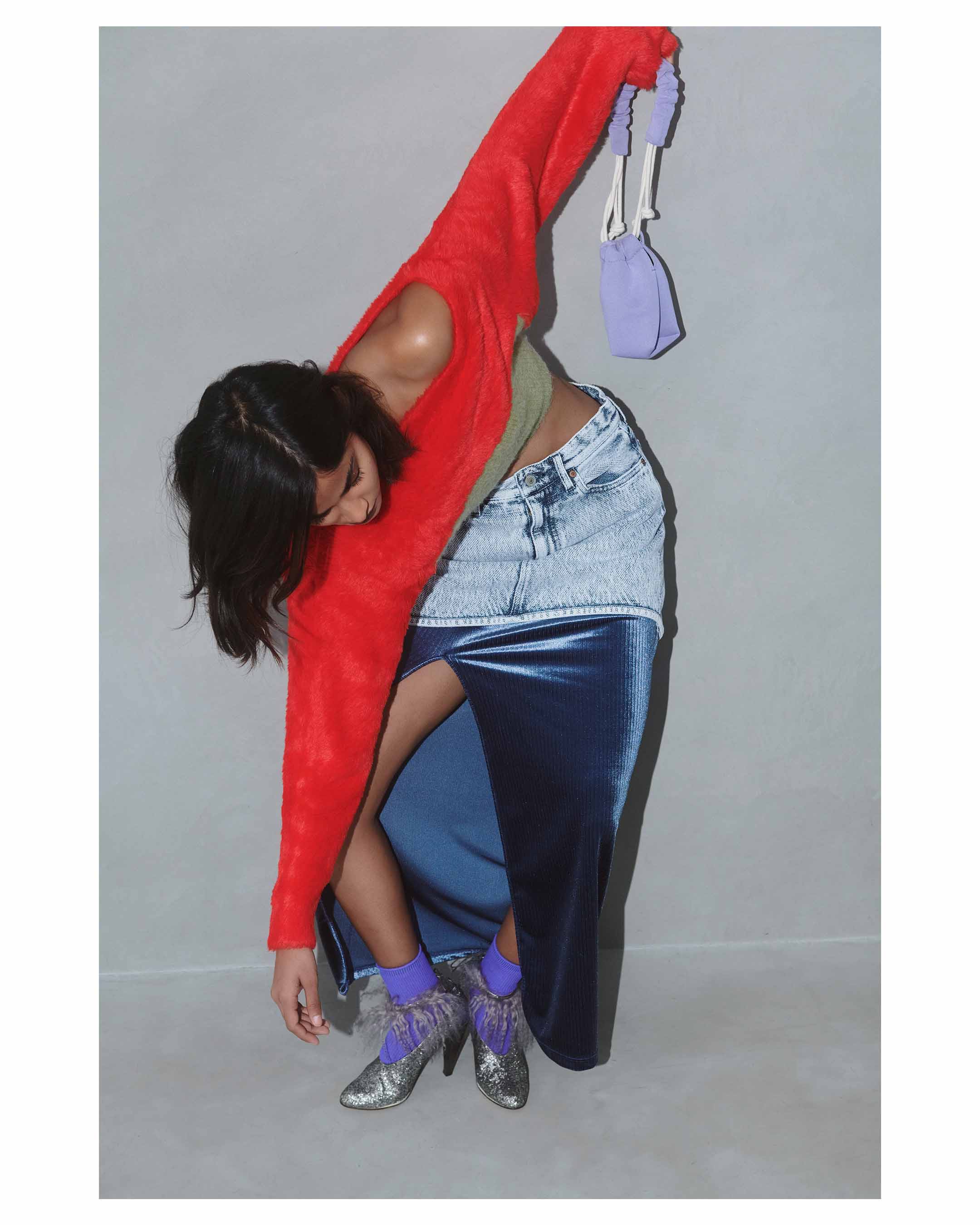 KTX5A-CA03〈FLEX VELVET SIDE SLIT SKIRT〉NAVY