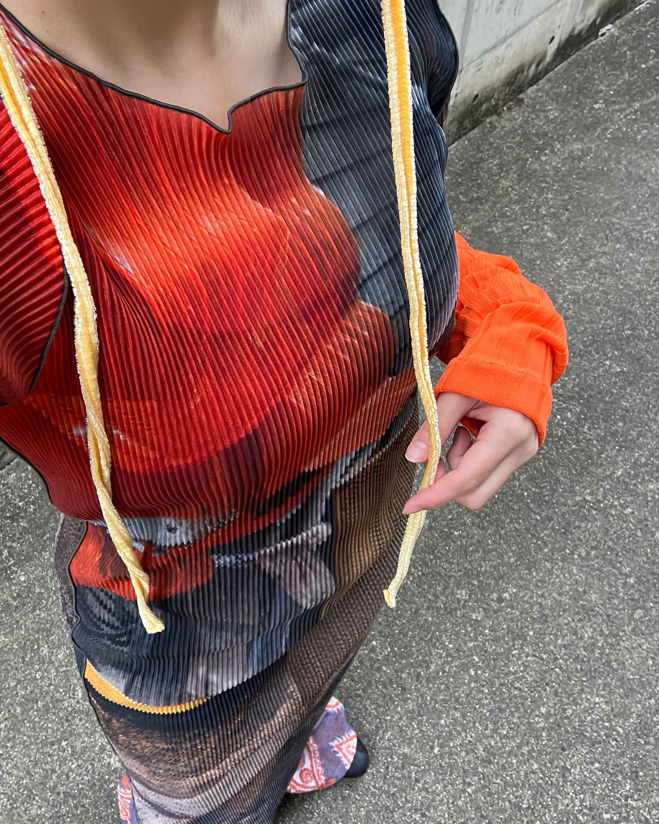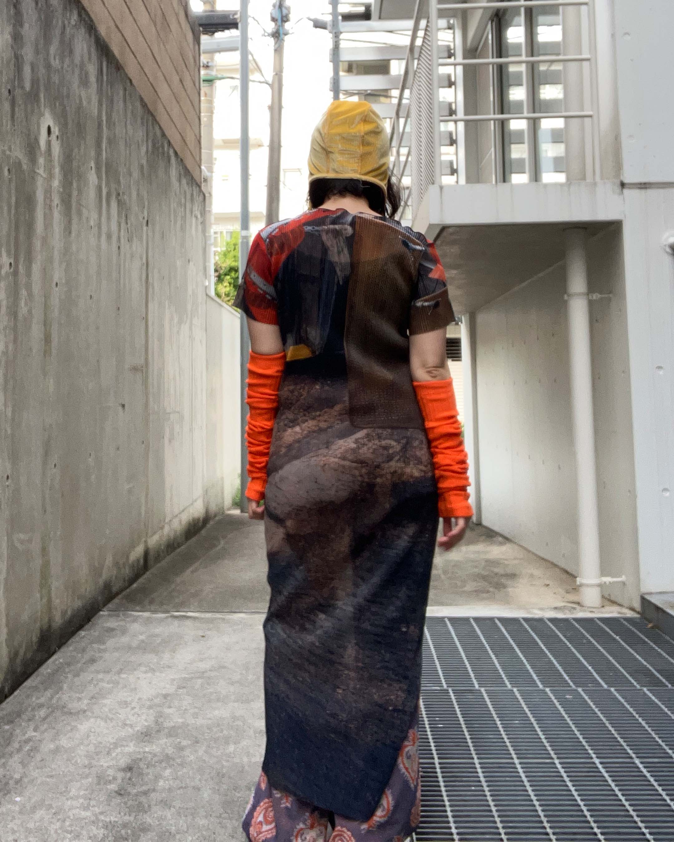 TDX6S-GR-DR02〈SHEER GRAPHIC DRESS *SHORT-SLEEVE〉ORANGE WAVE