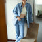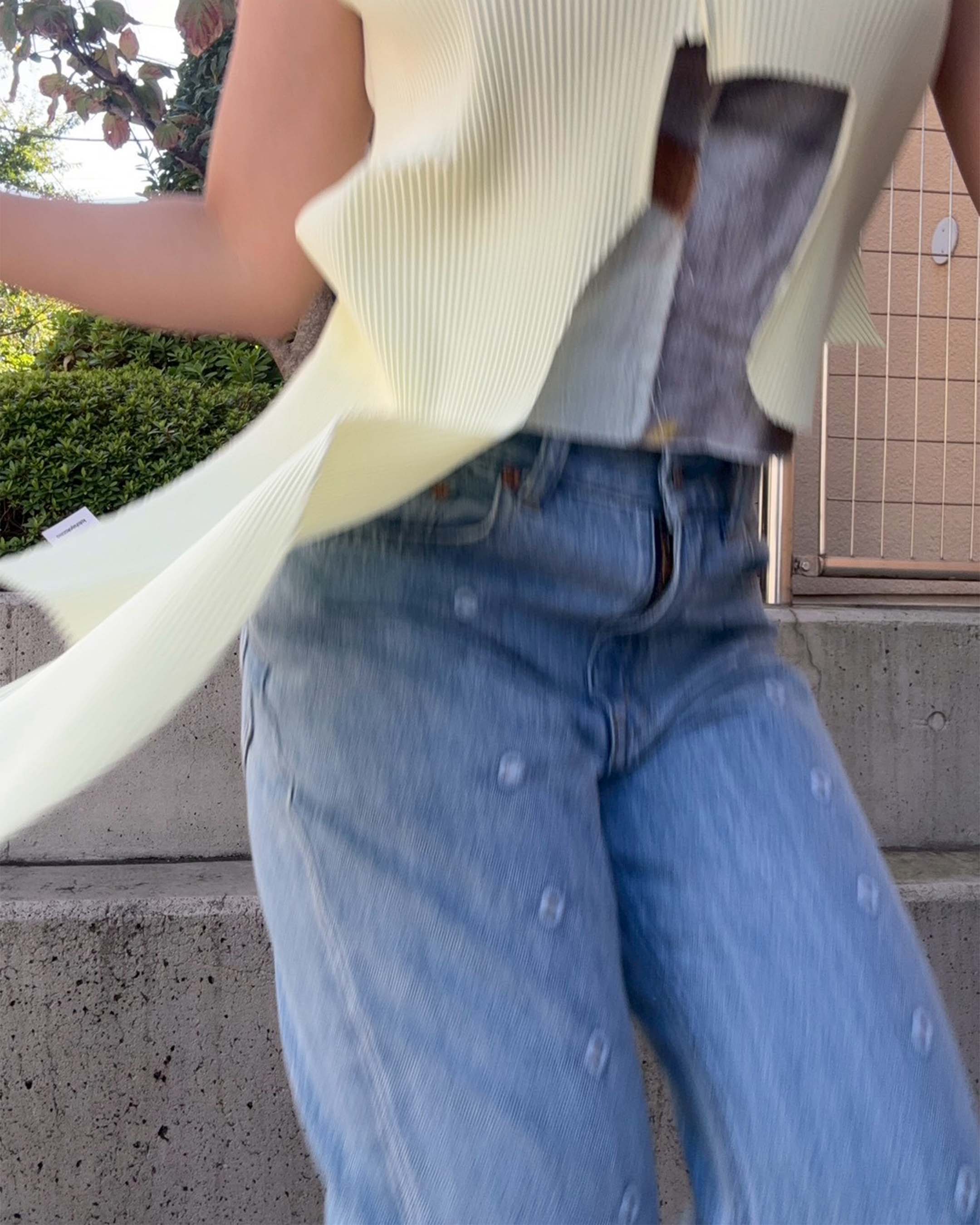 太ももはやや細身で、膝から裾にかけて自然に広がるブーツカット。膝まではシャープに絞られていますが、裾で広がることで脚を長く見せ、ブーツやヒールにきれいに裾がかかるよう設計されています。
