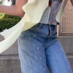 Bootcut denim with embroidered eyelet hole design.