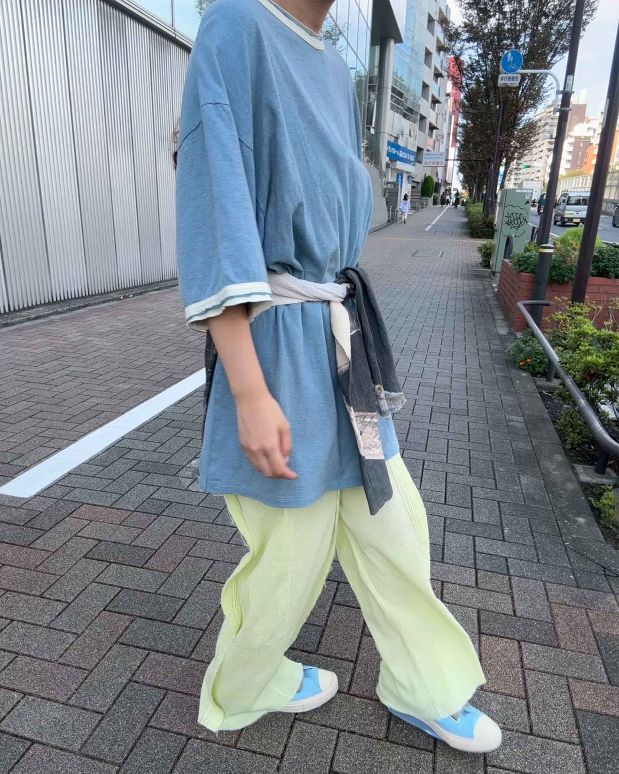 Crafted from lightweight, supple yoryu fabric with a soft hand feel. "Azumadaki" is a traditional Japanese dyeing technique, recreated from an Edo-period method using small vats and slow hand processing to achieve a uniquely soft, nuanced texture. Each piece features subtle color variations in original, wagashi-inspired hues, celebrating the individuality of garment dyeing.