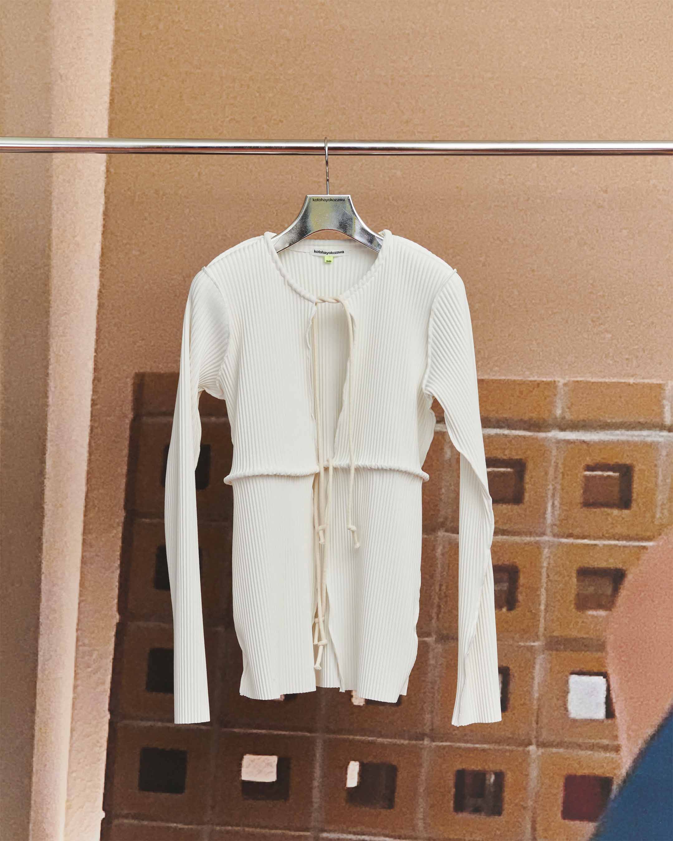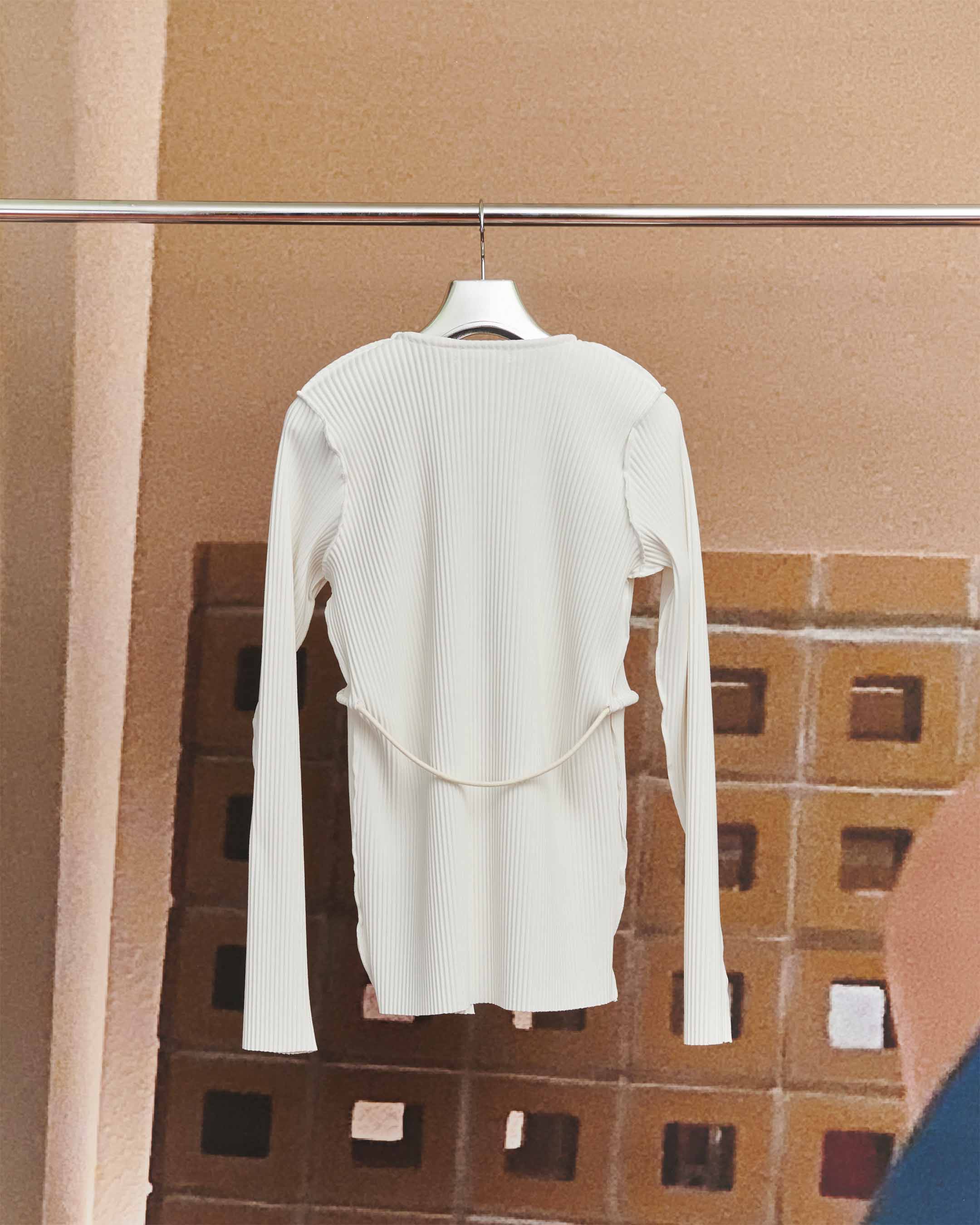Cardigan from the〈CRISP〉series, new this season, featuring a cotton-like texture and structured silhouette.