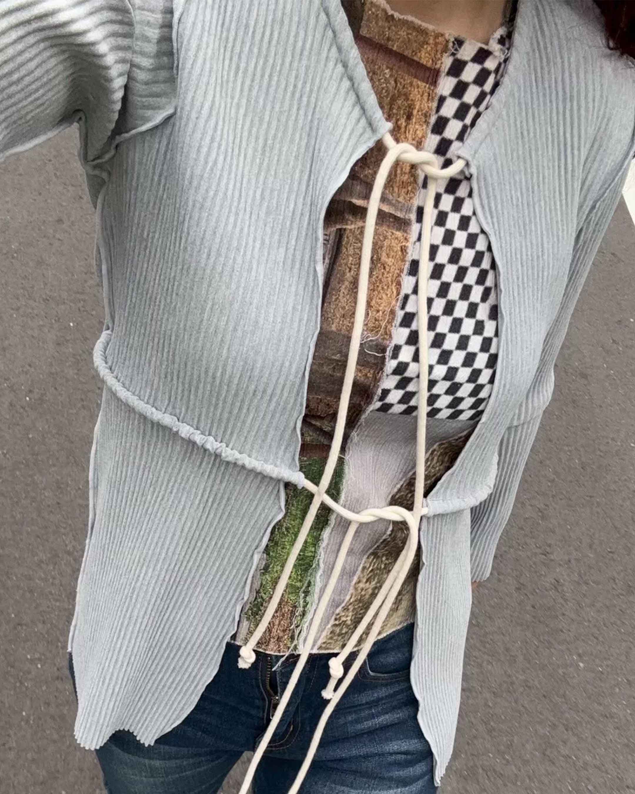 KT24A-KN01〈PATCHWORK KNIT BUSTIER〉GRAY