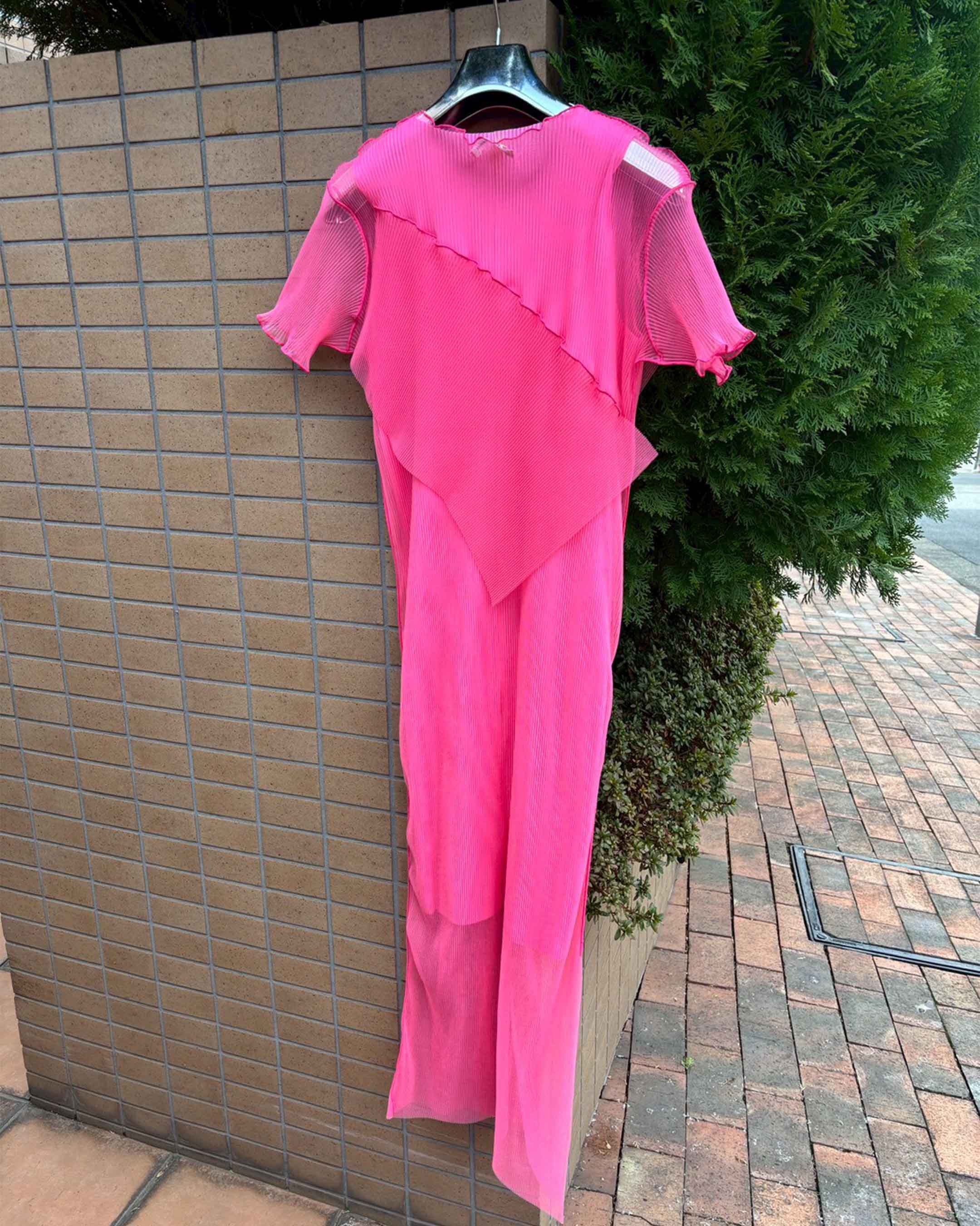todoの“抜け殻”のように透ける半袖のチュールドレスと、その色を美しく際立たせるインナーを組み合わせたセット。