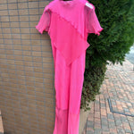 Half-sleeve sheer tulle pleated dress with a matching inner set.