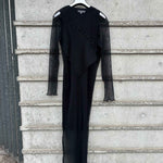 Long-sleeve sheer tulle pleated dress with a matching inner set.