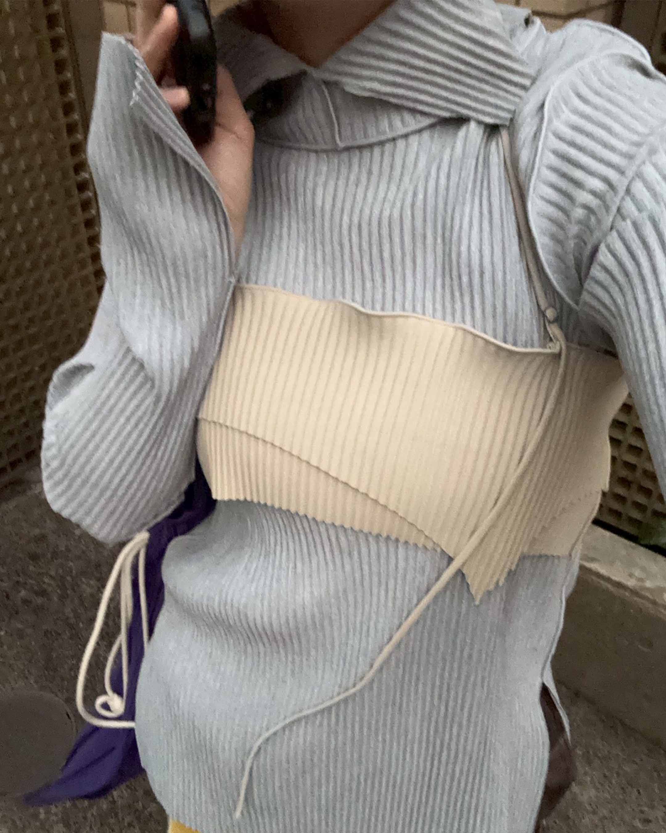 TDX5A-CP-T02〈CRISP HIGH NECK TOP〉GRAY