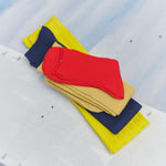 4 pairs assorted sock set made entirely from deadstock nylon yarn discovered at a sock factory in Nara. Includes a variety of lengths — short, high, over-the-knee, and leg warmers — in assorted colors to enjoy mixing and matching every day.