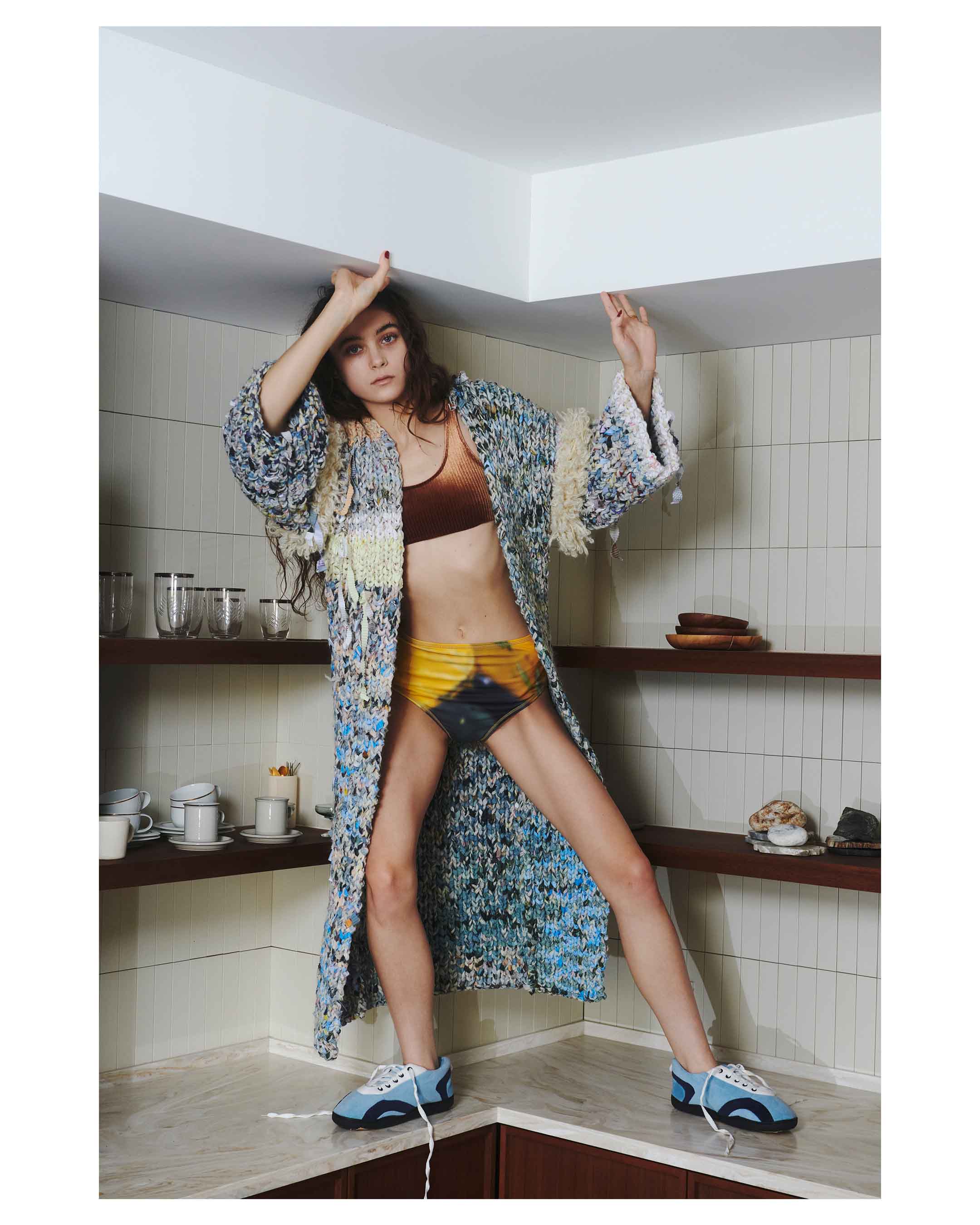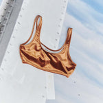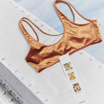 スイムウェアにも使用される生地を使用しているので、インナーとして、パッドを入れて水着として、レイヤードアイテムとしてetc... 汎用性の高い一着!