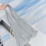 持ち方を変えることでナップサックのようにも使用できるマルチウェイ仕様。柔らかな色合いとザクザクした5mmプリーツの質感は、いつものコーディネートのアクセントにも最適。