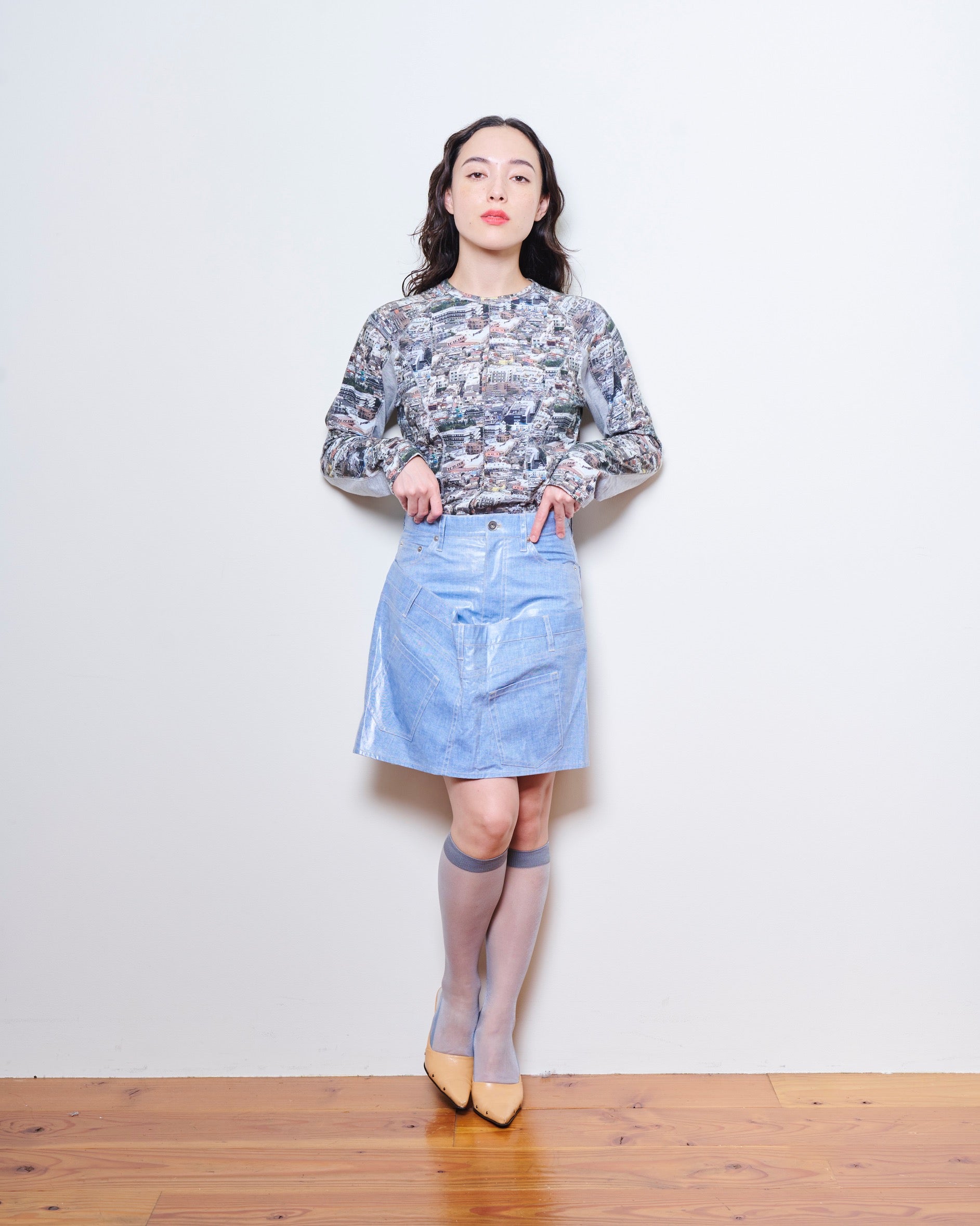 KT18S-SK01 〈Coating denim like mini skirt〉LT.BLUE