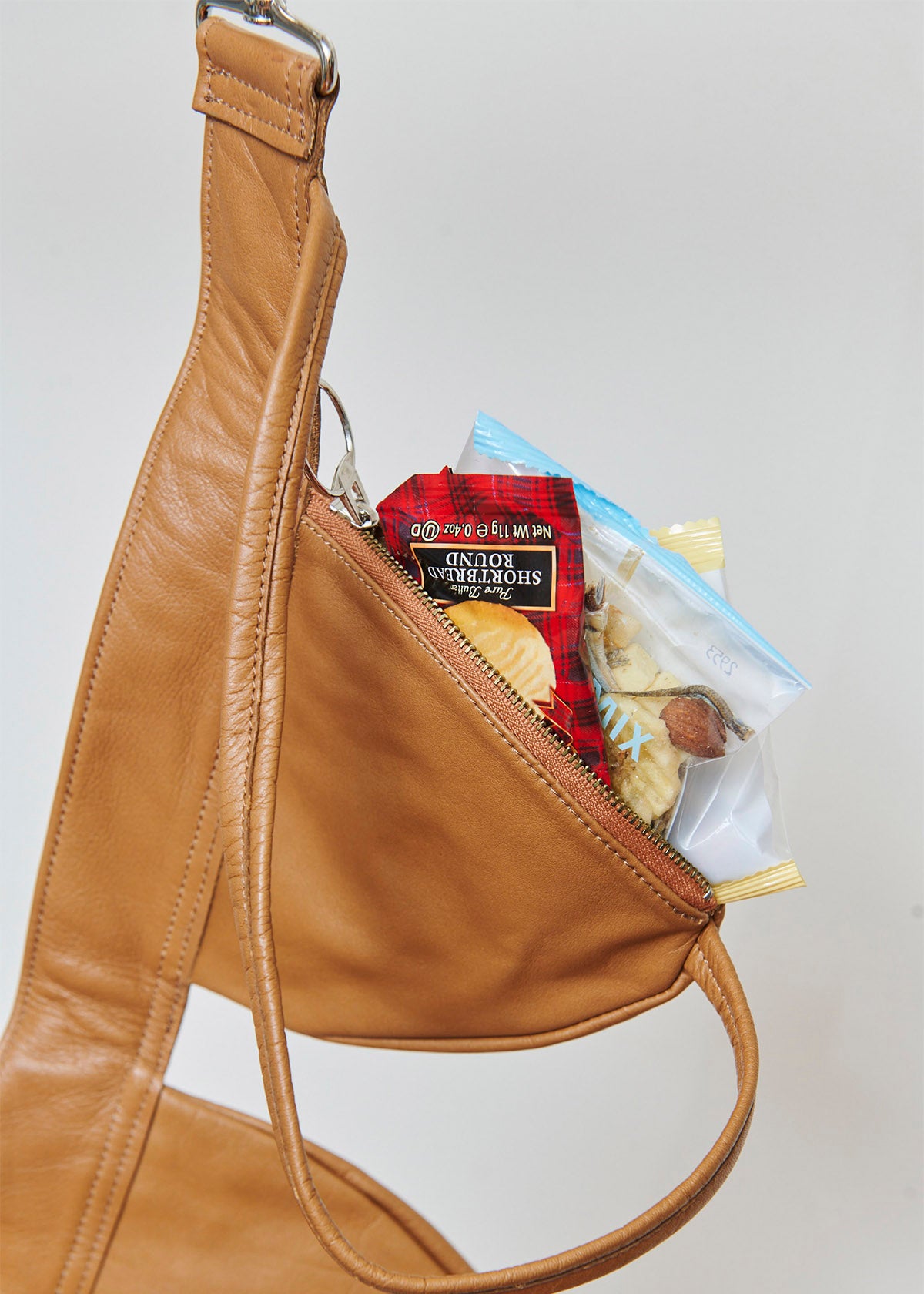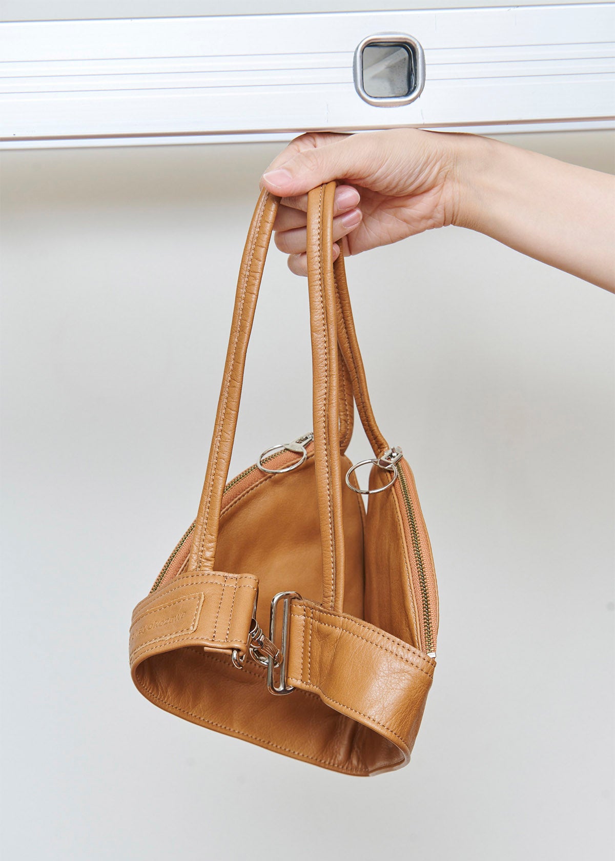 ブラの形をした、フェミニンでいて遊び心も感じるレザーバッグ。