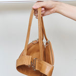 カップ部分にファスナーがついており、中に物を入れることができます。目を惹くスパイスになるようなアイテムです。そのままだらんと持っていても素敵ですが、ホック部分をはめて肩紐を合わせてコンパクトに持つこともできます。アートピースのようなモチーフバッグ、いつもの日常に何気なく合わせてみて欲しいです。