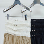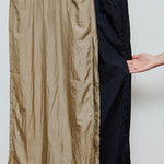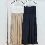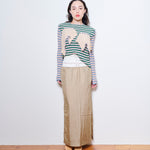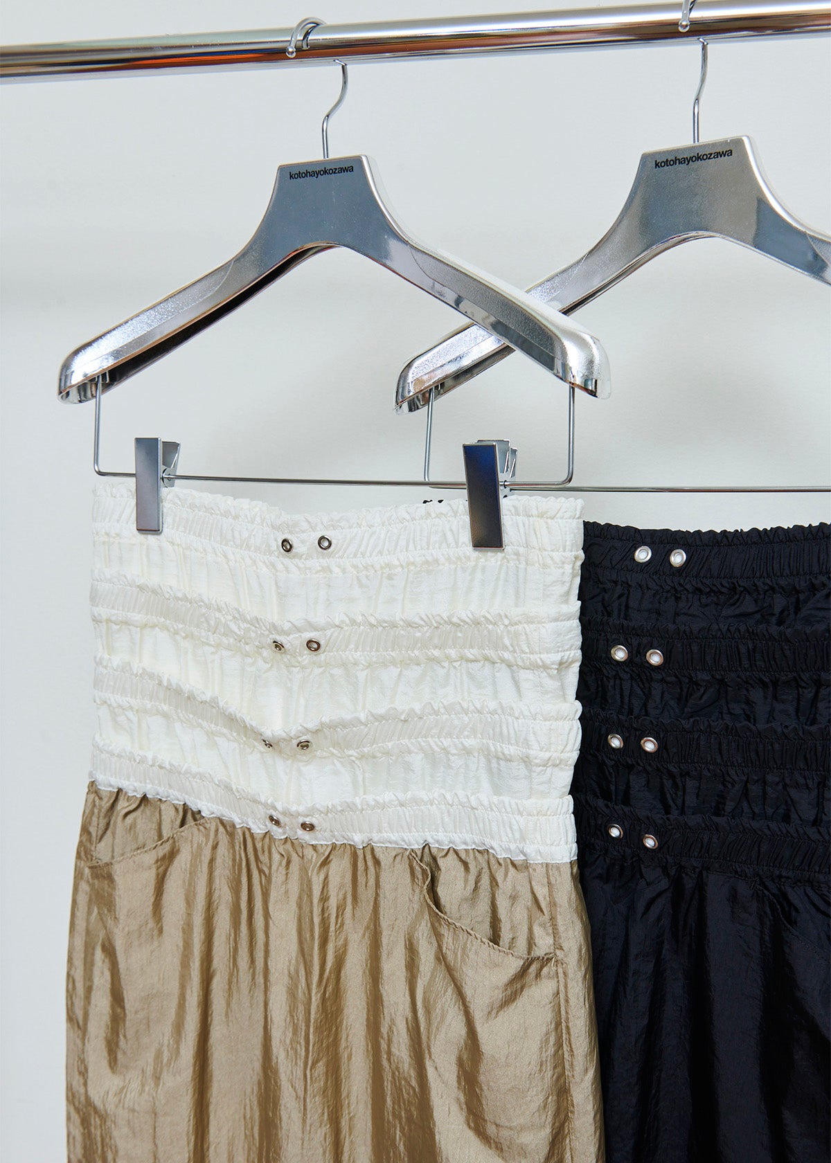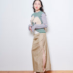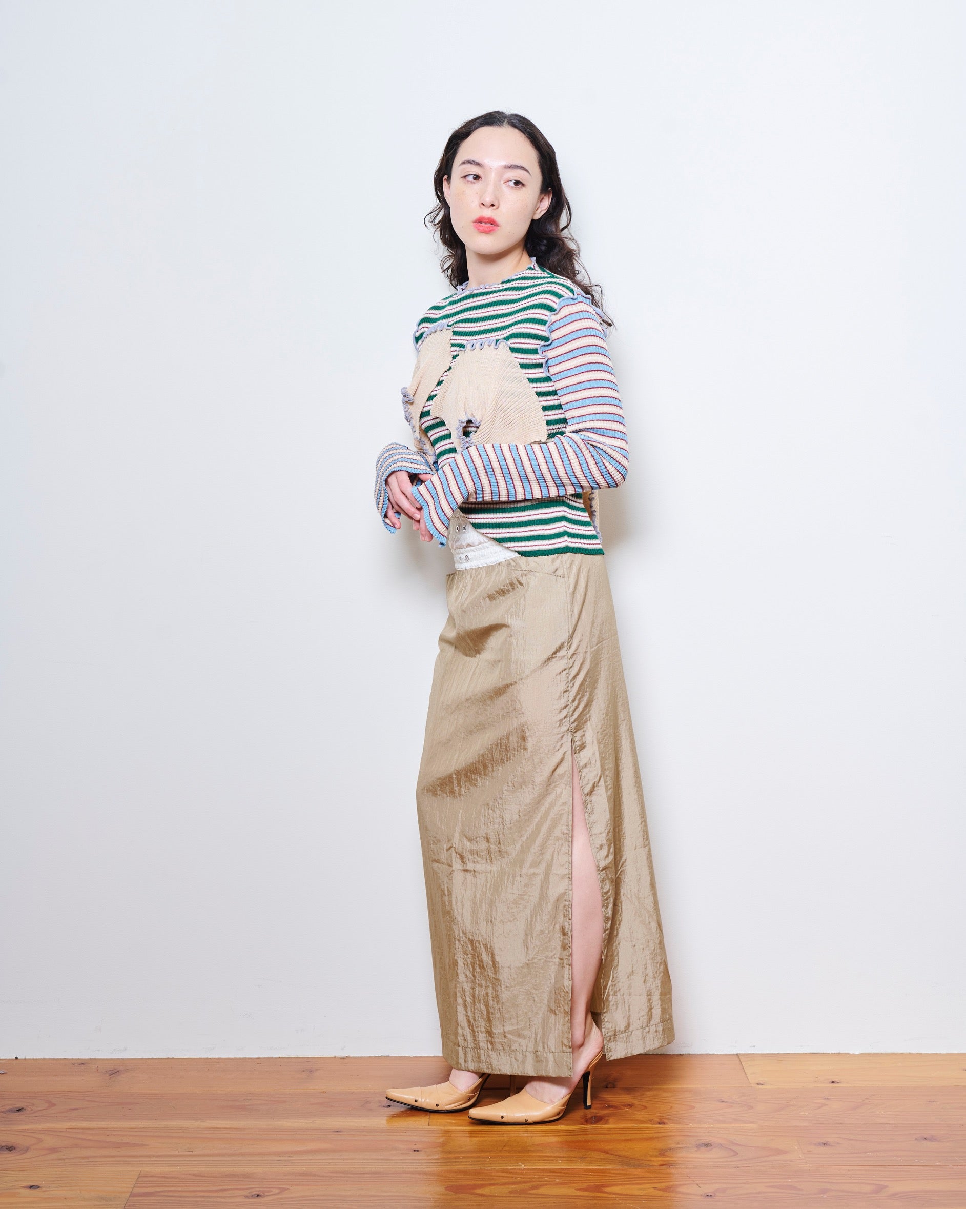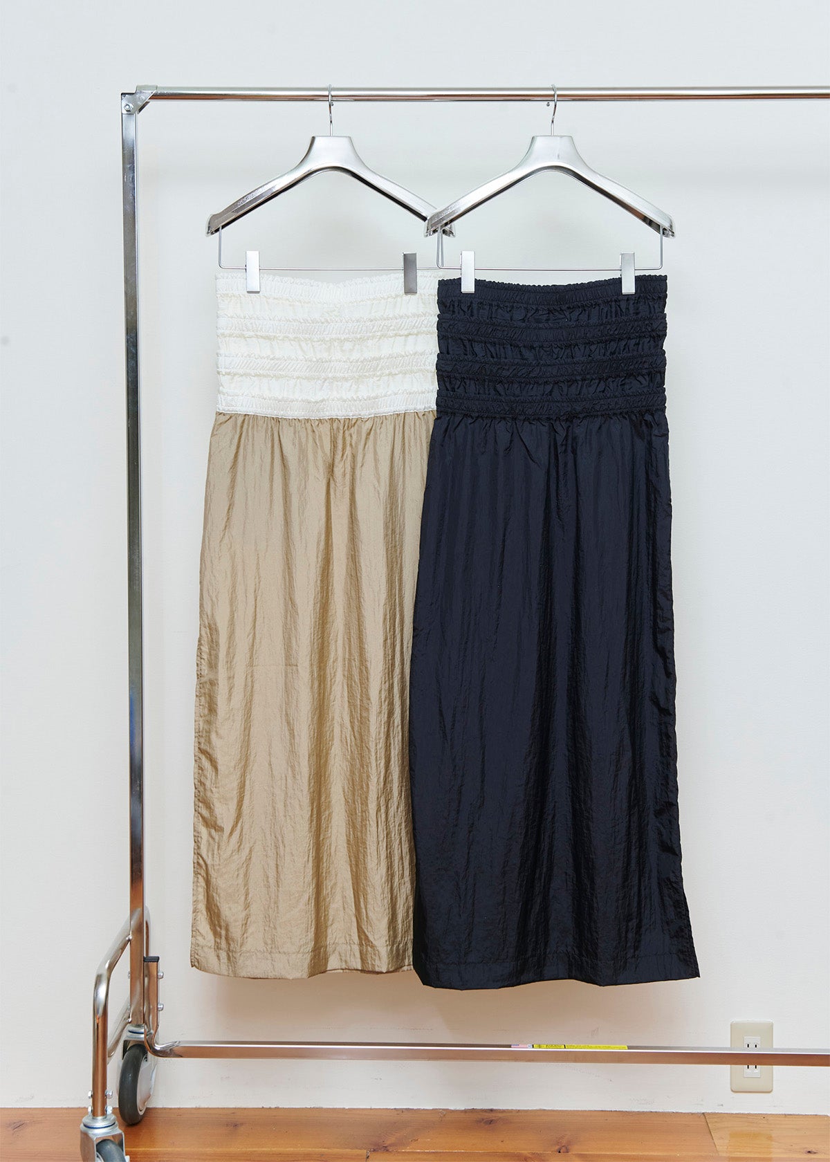 Sheeny nylon maxi skirt with a four-layered waist design.