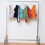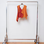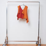 Extended seam allowances from front/back center, shoulders, and sides create a striking look from every angle. Color-blocked on the front left panel, with different front/back tones for a multi way look.