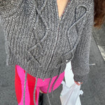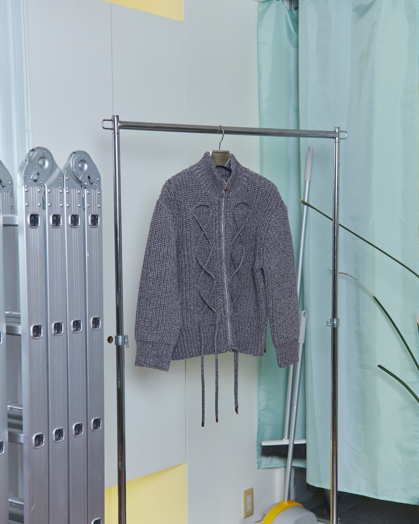 KT24A-KN04〈REVERSE ZIP-UP HAND KNIT〉GRAY