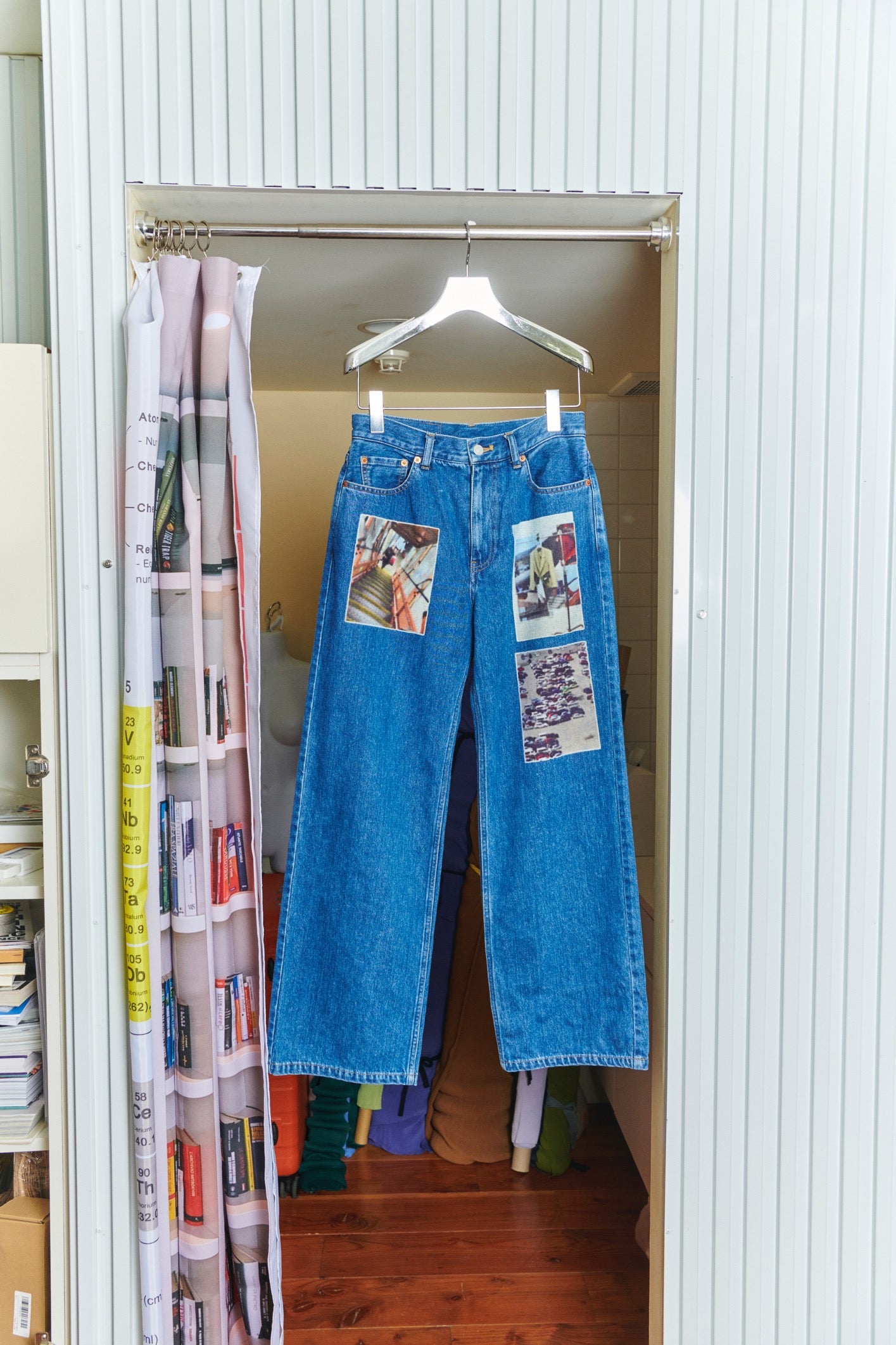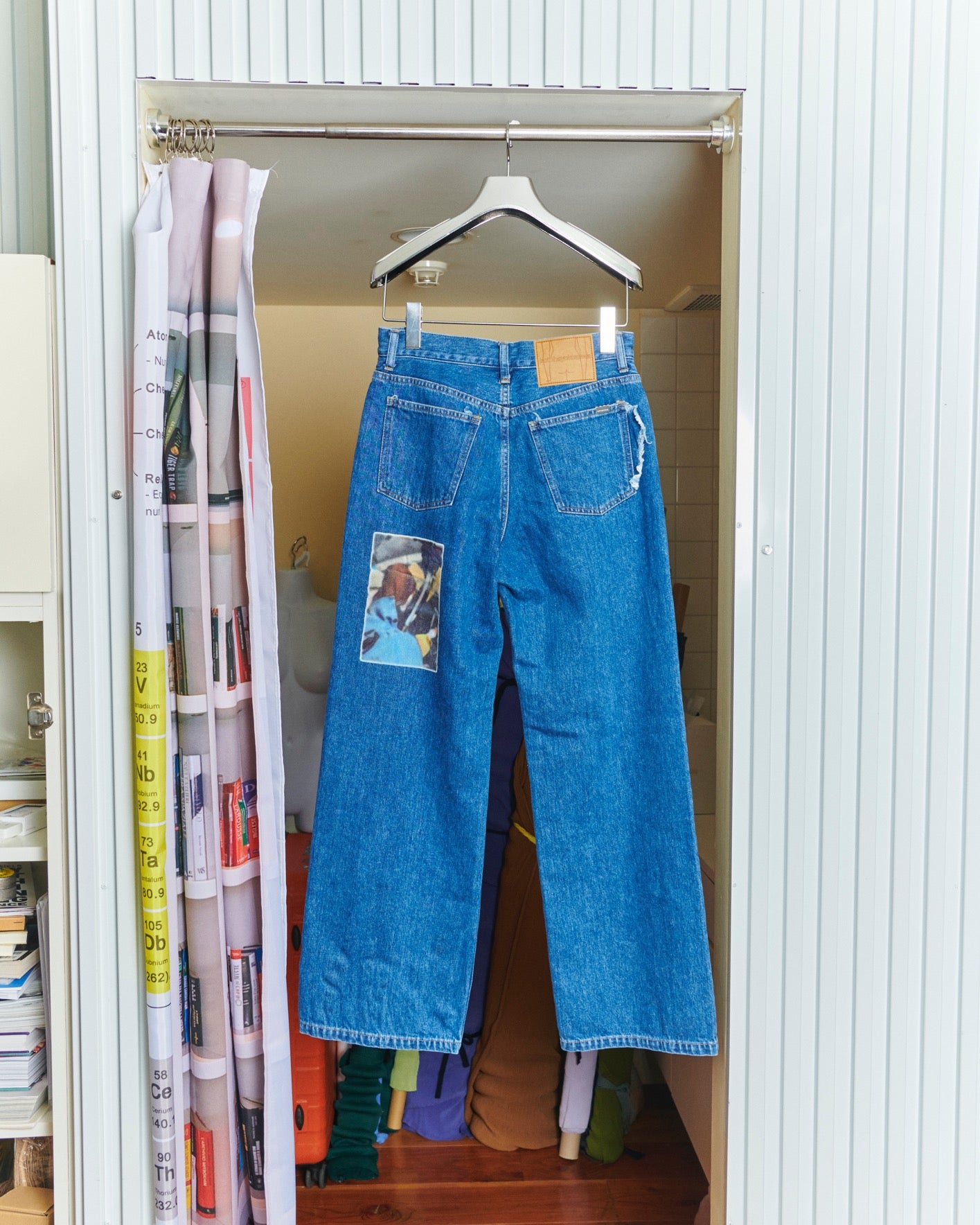 ストレートシルエットのジーンズにカバーオールと同じグラフィックがプリントされています。元々グラフィックアイテムが大好きですが、総柄ではなく、ポイントで転写プリントがあるボトムは世にあまり無い気がしています。AWは特にトップスが無地やシンプルなものになりがちなので、スタイリングの良いスパイスになってくれます。
