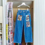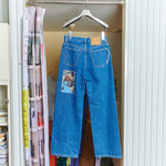 Matching jeans pants for KT24A-JKT. Straight silhouette with matching graphic prints. Unlike patterned or solid denim, it is hard to find one with the transfer print as an accent. Pair it with matching jacket for a completed look or any autumn/winter outfit for a perfect amount of oomph.