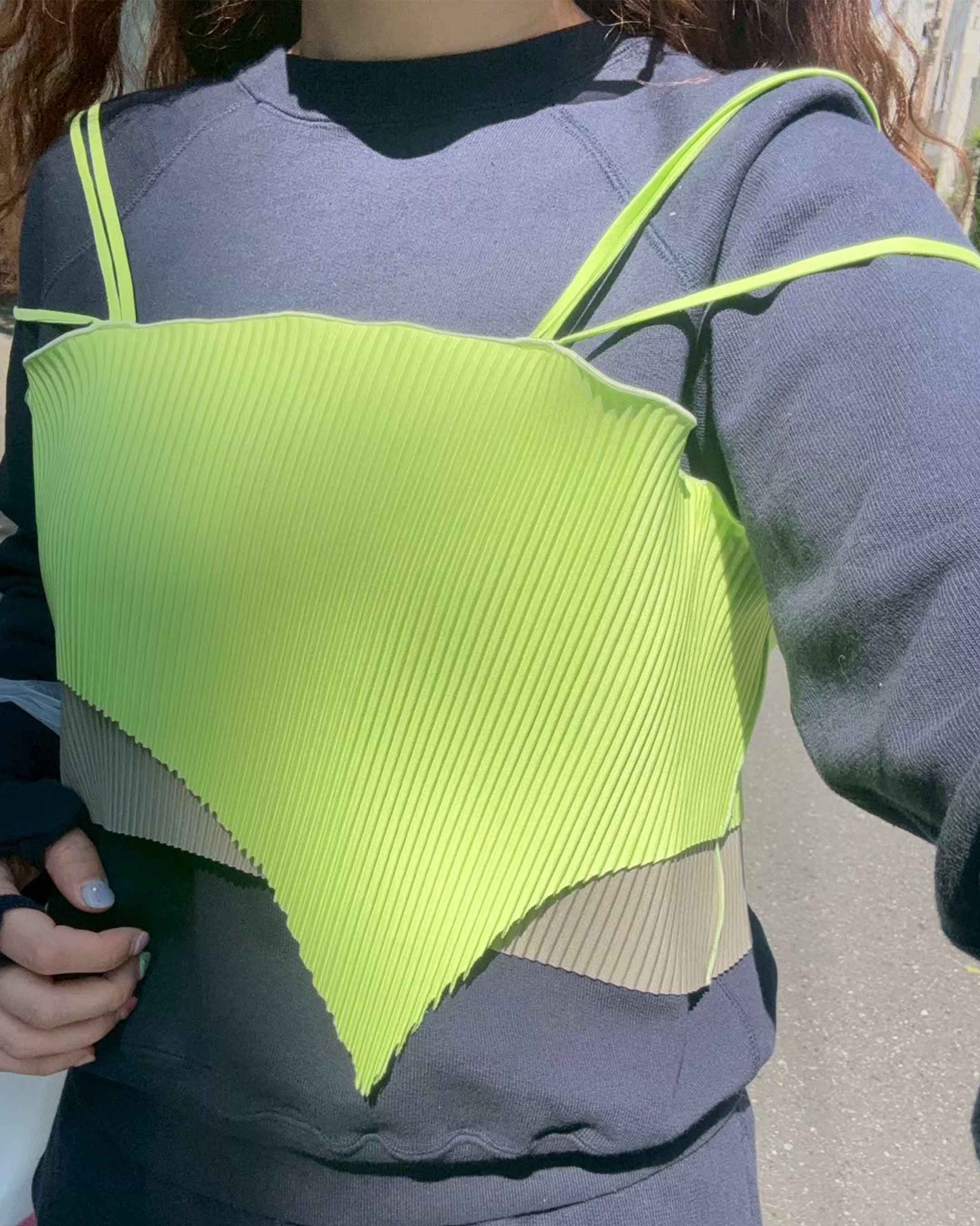 Due to the nature of the material, it is prone to stretching. Avoid hanging and store folded.