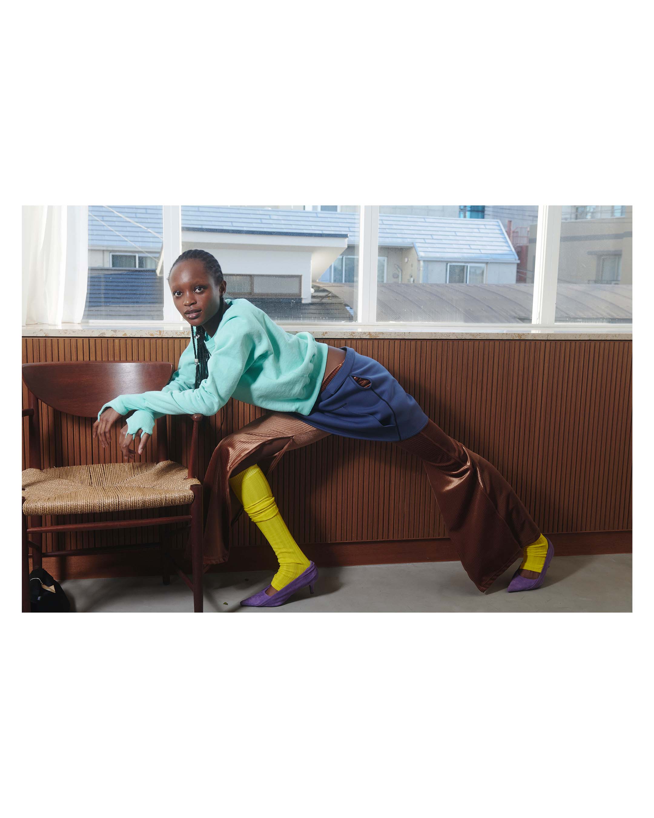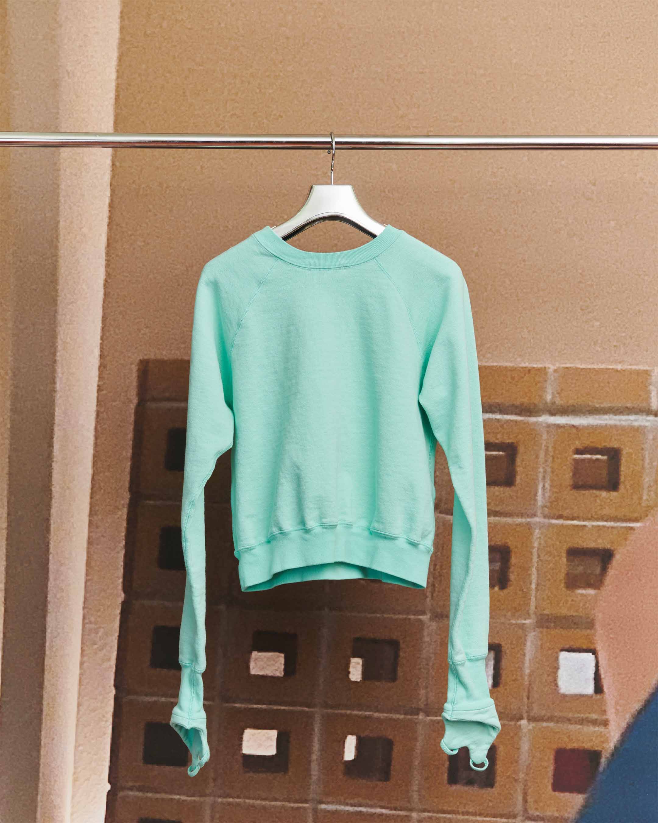クロップド丈と今シーズンを象徴する“CUFF-GLOVE”ディテールがポイントのスウェットトップス。AD02と合わせてフーディー風にも。
