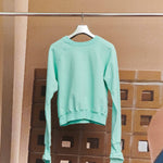Cropped crewneck sweatshirt with this season’s iconic “CUFF-GLOVE” detail. Matching hood available: AD02