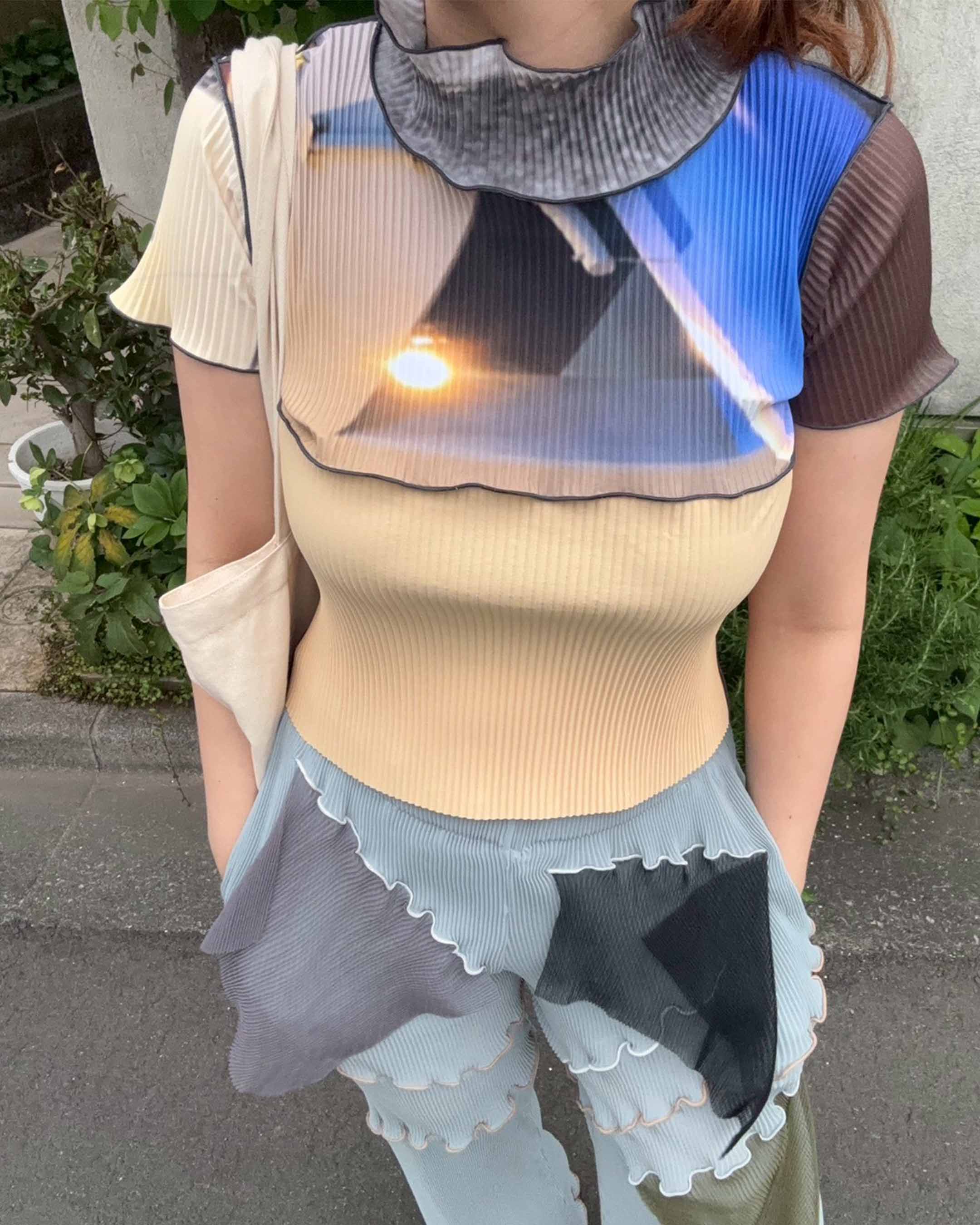 somebody-053〈GRAPHIC TINY HIGH-NECK TOP〉BEIGE