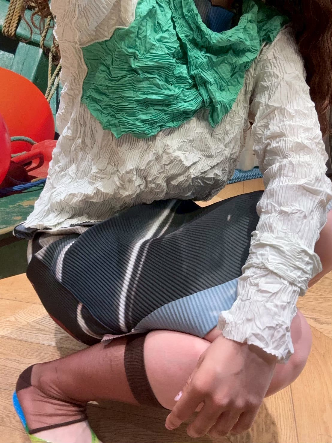 素材は回収されたペットボトルを原料としたリサイクルポリエステル生地を使用。伸縮性があるので、体型を選ばず、さらっとした着心地です。プリーツ方向にくるくるとまとめればシワもつきにくく、速乾性に優れており、旅行などにもピッタリです。