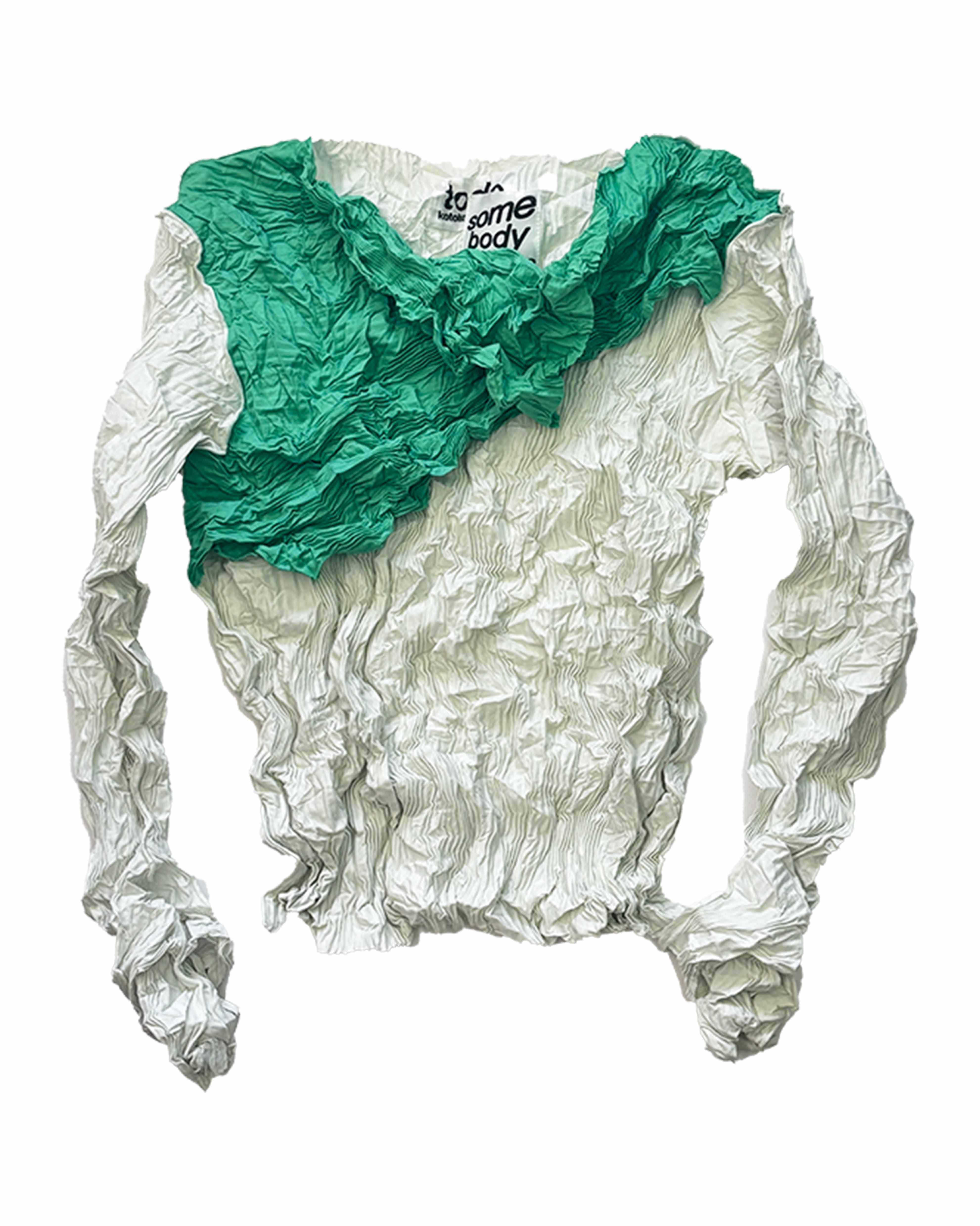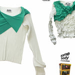 Refreshing white/green color long-sleeve tops. Each item comes with special hangtag with before/after images.