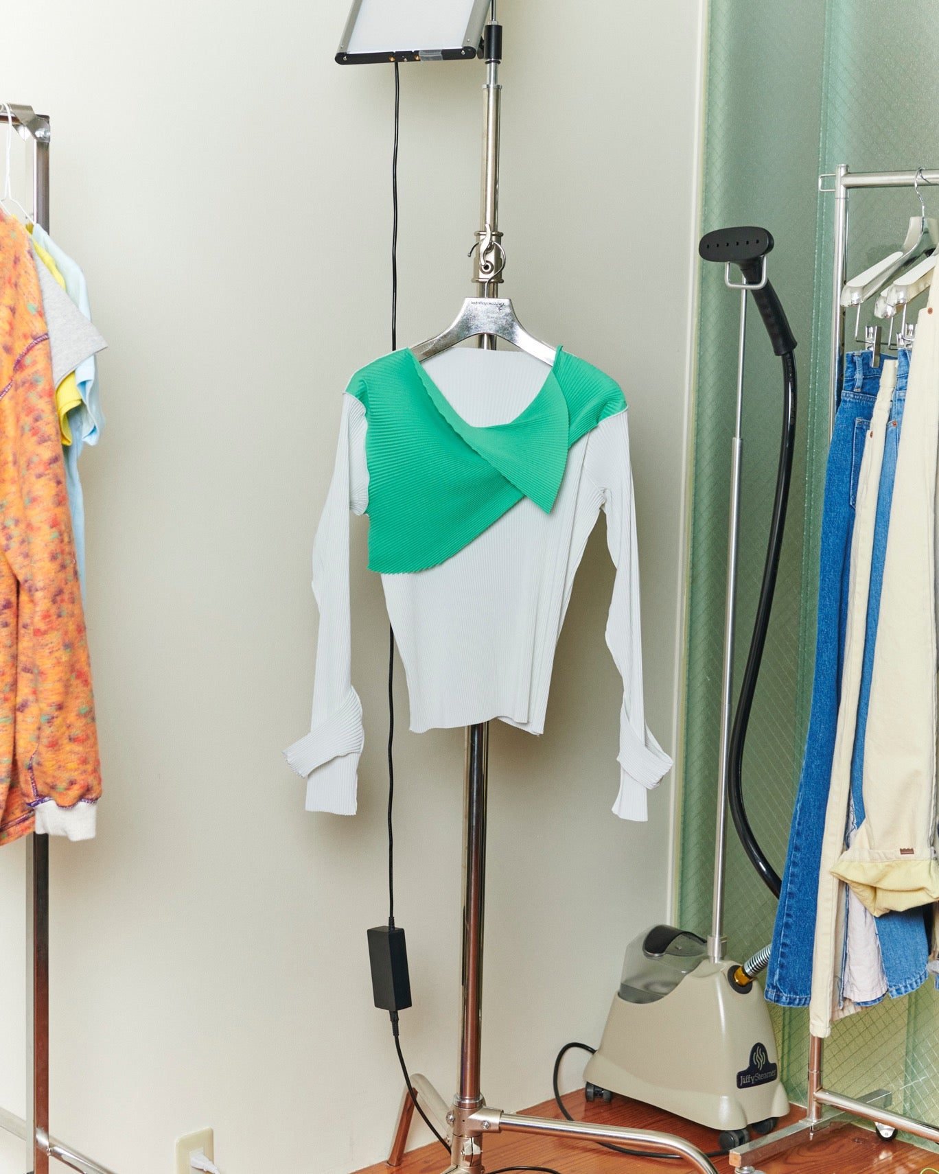 It can be machine washed using a net. Please handle with care as the seams are prone to tearing. Please refrain from ironing the pleats. If the pleats are wrinkled, please lift the ironing surface 1~2cm away from the fabric and apply steam gently. If the temperature is too high or the steam is too strong, the pleats may fall out. Please note that each item is made, so there may be slight individual differences.