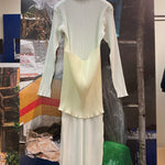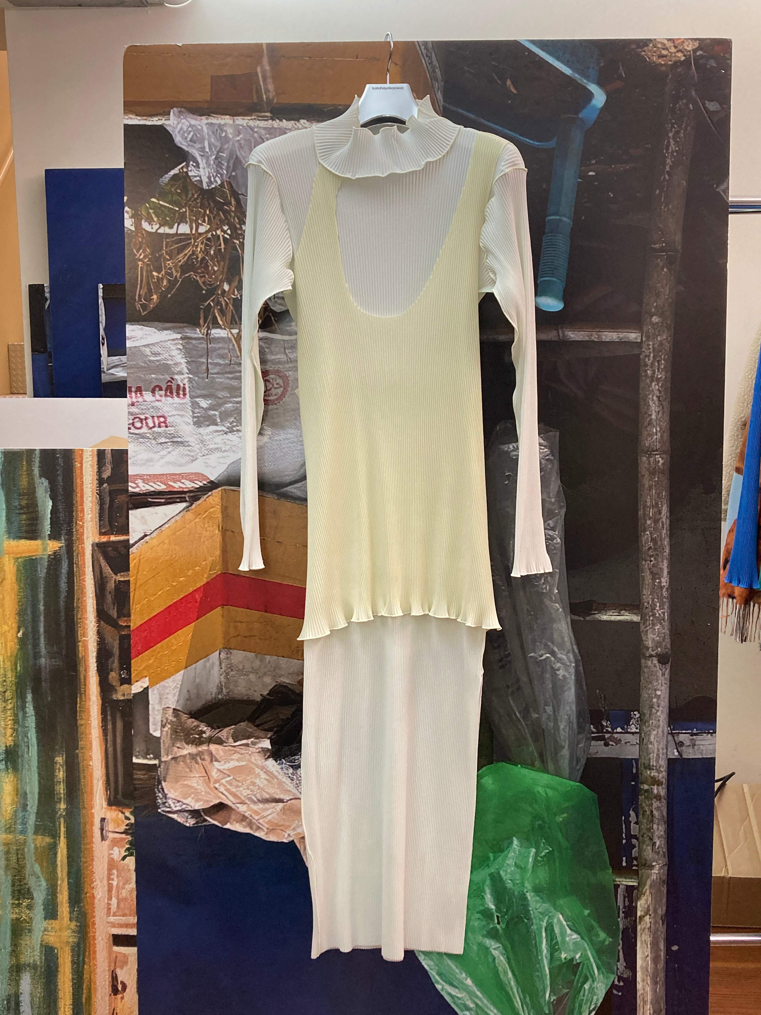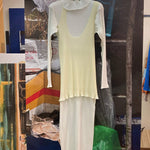 Long-sleeve todo dress with a slightly distorted tank top layering-like design. Matching color mellow piping.