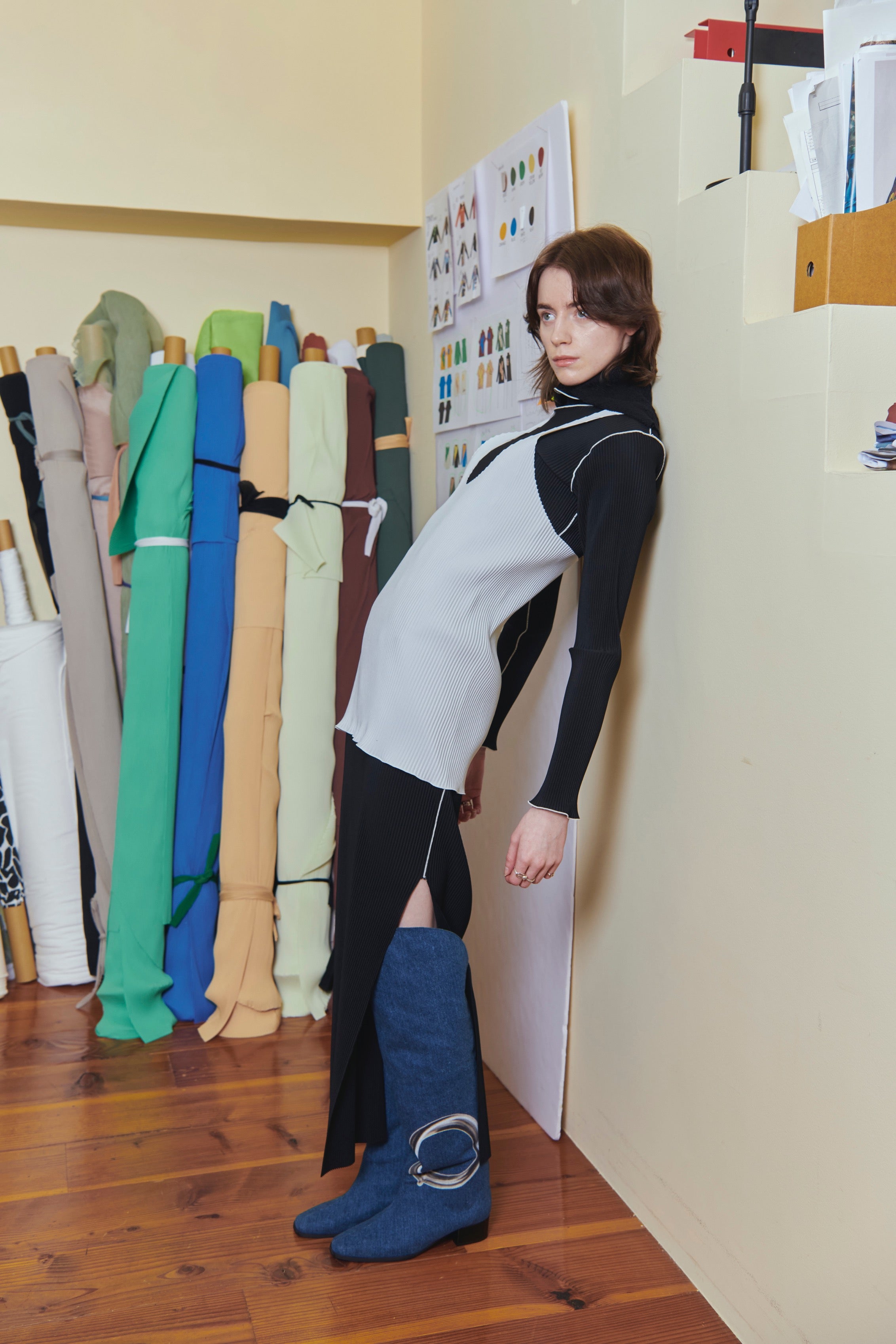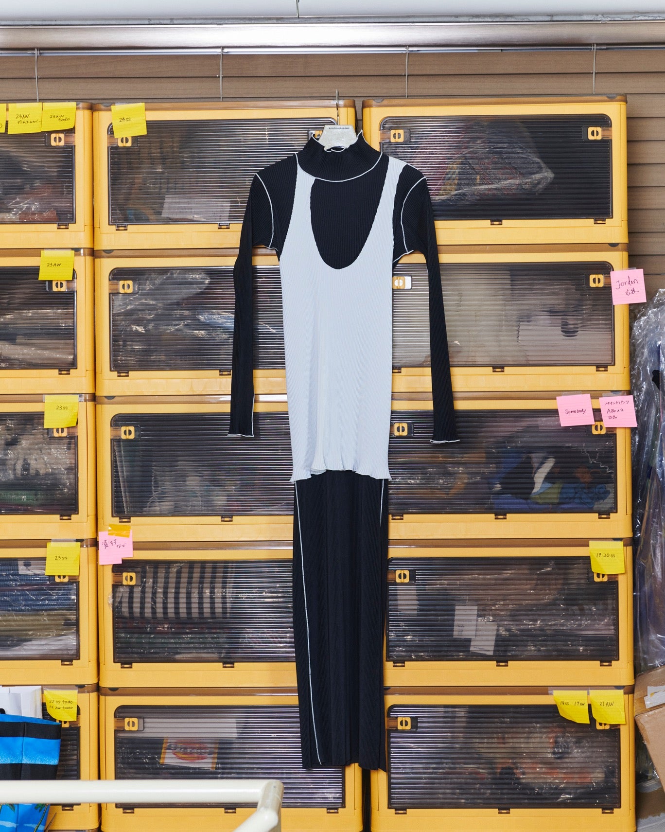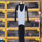 Long-sleeve todo dress with a slightly distorted tank top layering-like design. Matching color mellow piping.