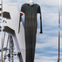 素材は回収されたペットボトルを原料としたリサイクルポリエステル生地を使用。艶とハリのある質感が特徴です。プリーツ加工がされており伸縮性があるので、体型を選ばず、さらっとした着心地です。プリーツ方向にくるくるとまとめればシワもつきにくく、速乾性に優れており、旅行などにもピッタリです。