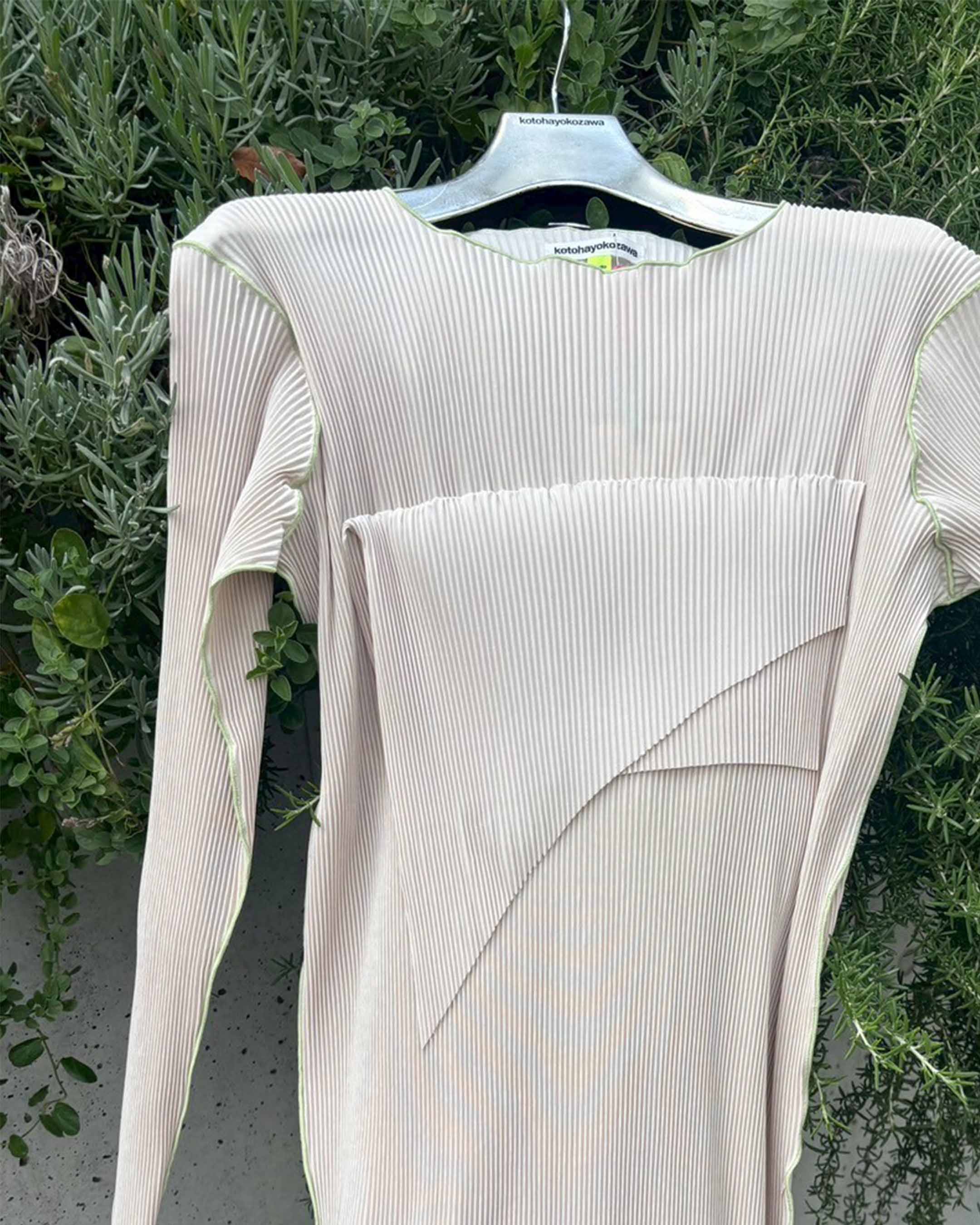プリーツが消失することがありますので、着用・洗濯の際はご注意ください。プリーツ部分のアイロンのご使用は避けてください。シワが気になる際は、スチームで優しくうかしアイロンをしてください。