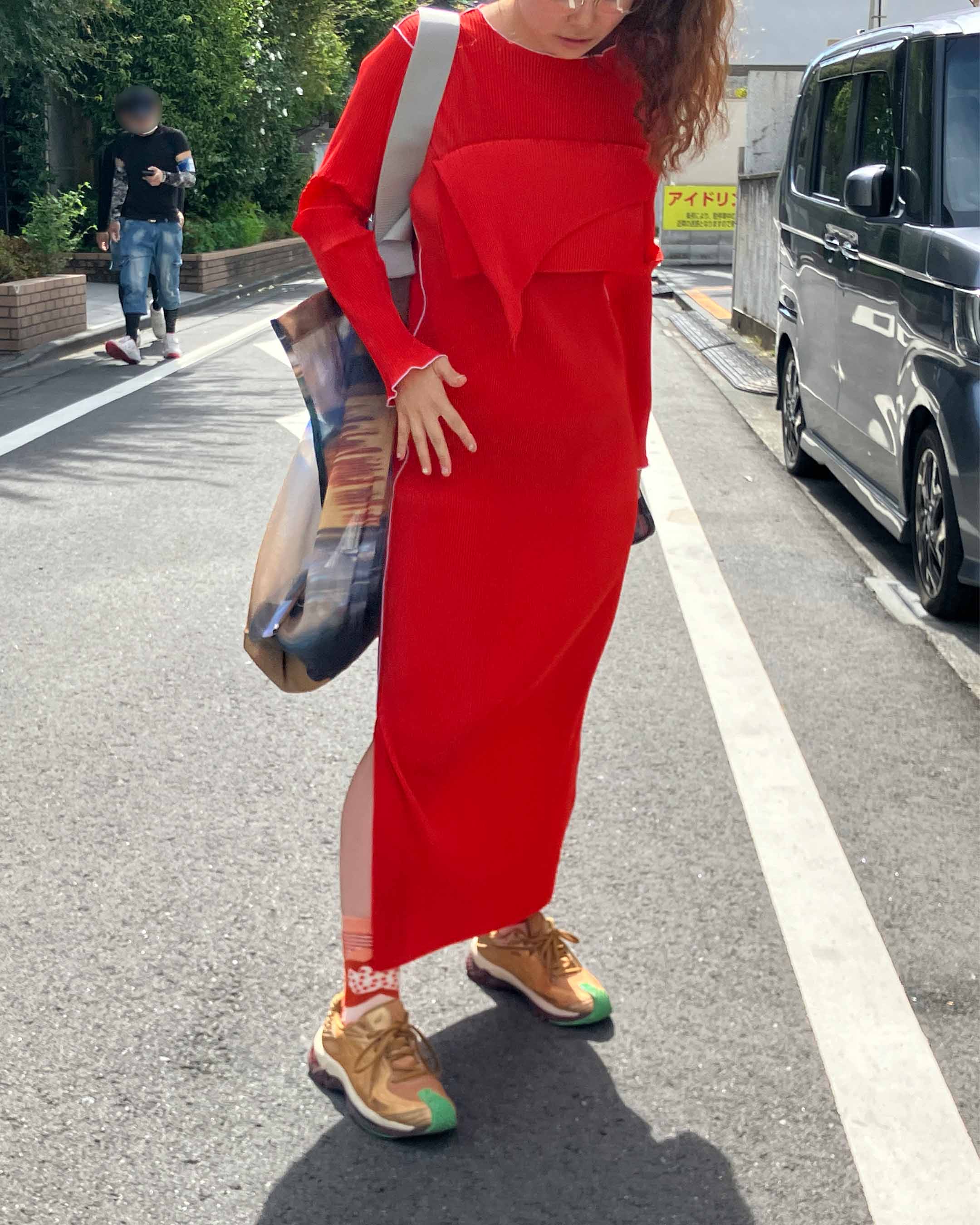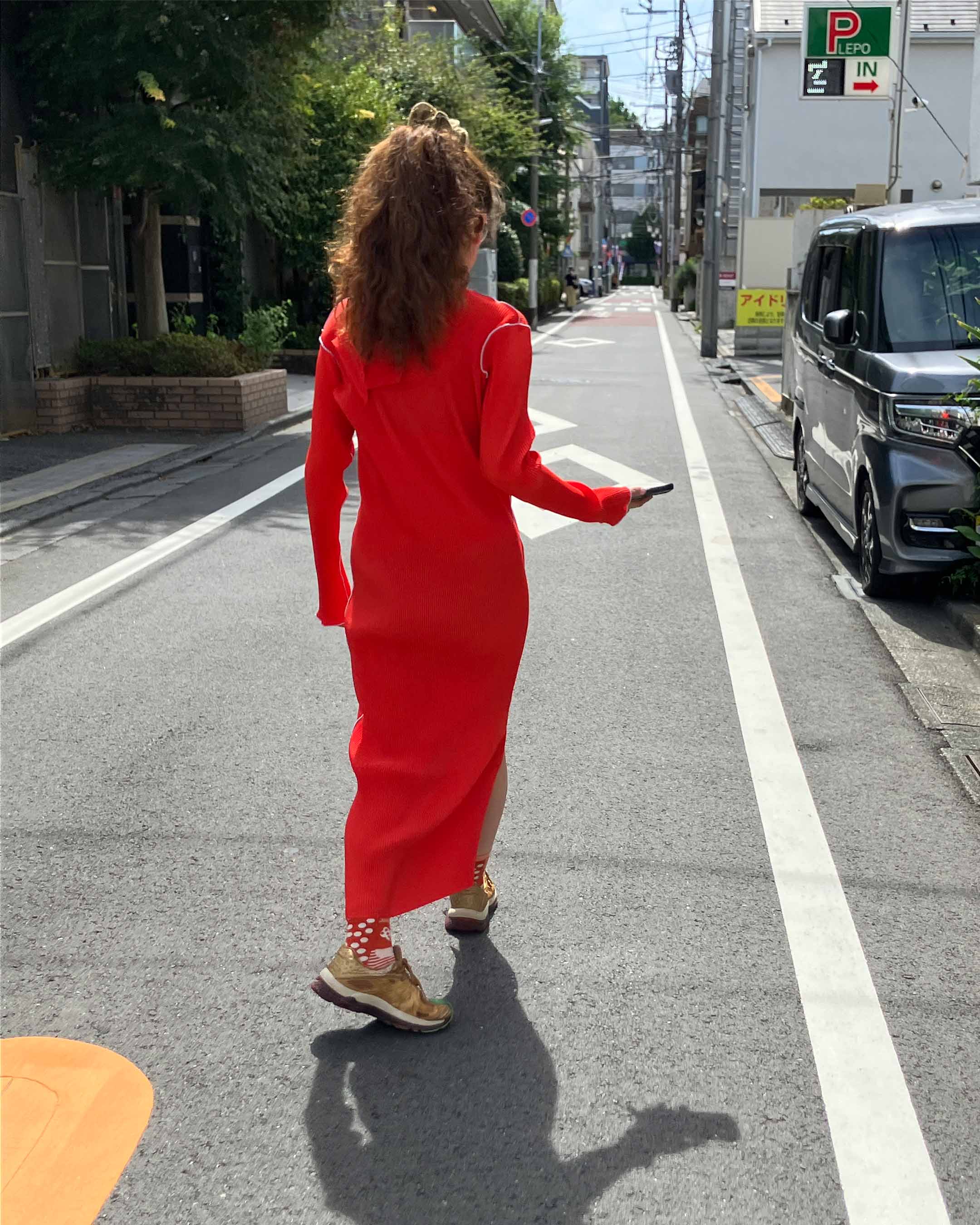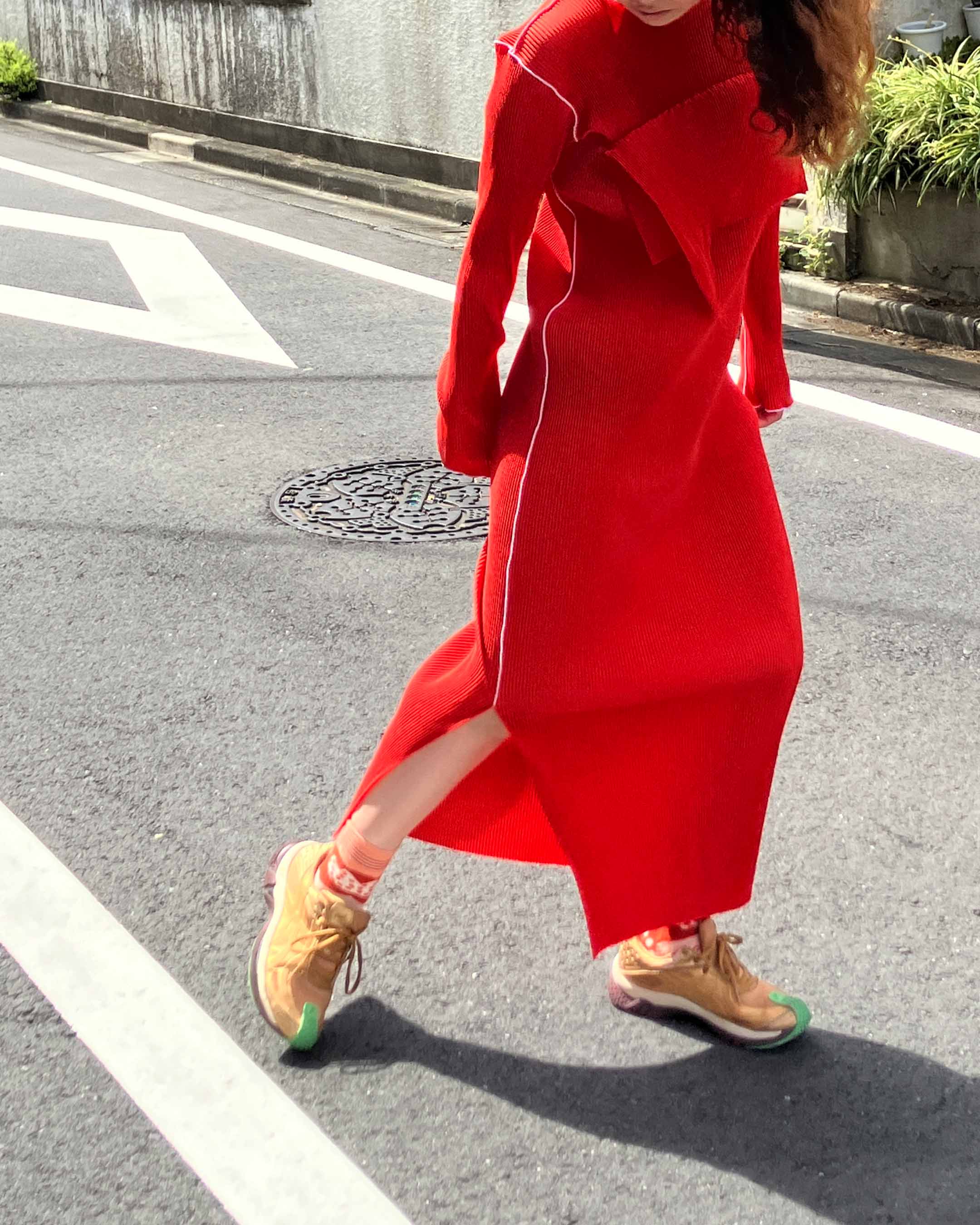 TDX5A-TDLD01〈T*D* WAVE LONG SLEEVE DRESS〉RED