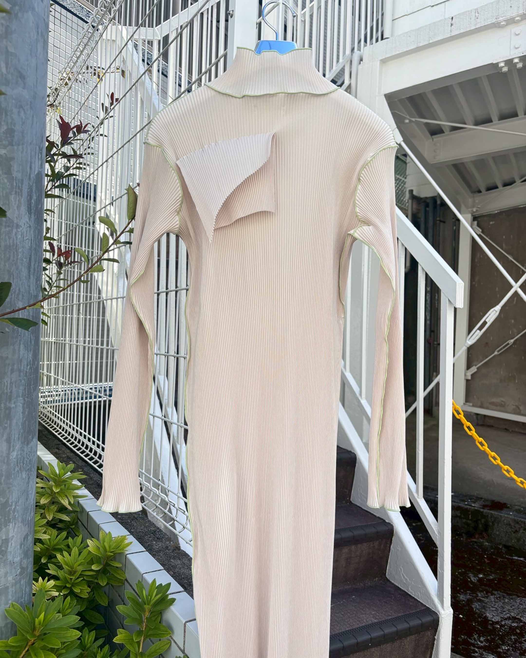 TDX5A-TDLD02〈T*D* WAVE LONG SLEEVE DRESS *HIGH NECK TYPE〉LT.BEIGE