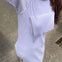 Made from recycled polyester sourced from collected plastic bottles. Dense and sheeny pleated polyester, comfortable for any body shape. Wrinkle-resistant and quick-drying, perfect for travel and everyday wear.