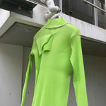 TDX5A-TDLD01のハイネックモデル。遊び心のある飾りがtodoらしいドレス。配色のメロウをアクセントにクリーンなデザインに仕上げました。