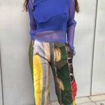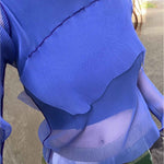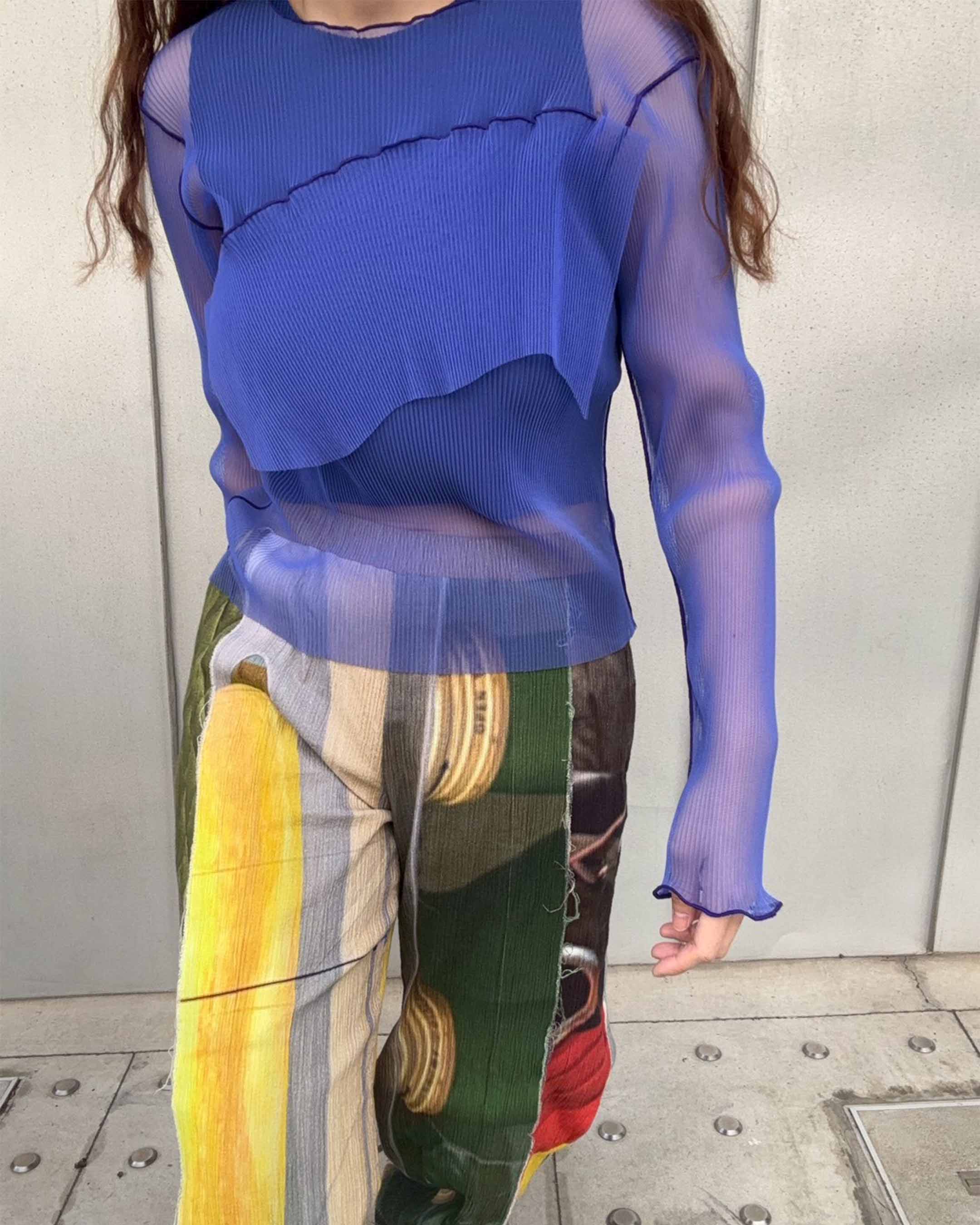 Long-sleeve sheer tulle pleated top with a matching inner set.