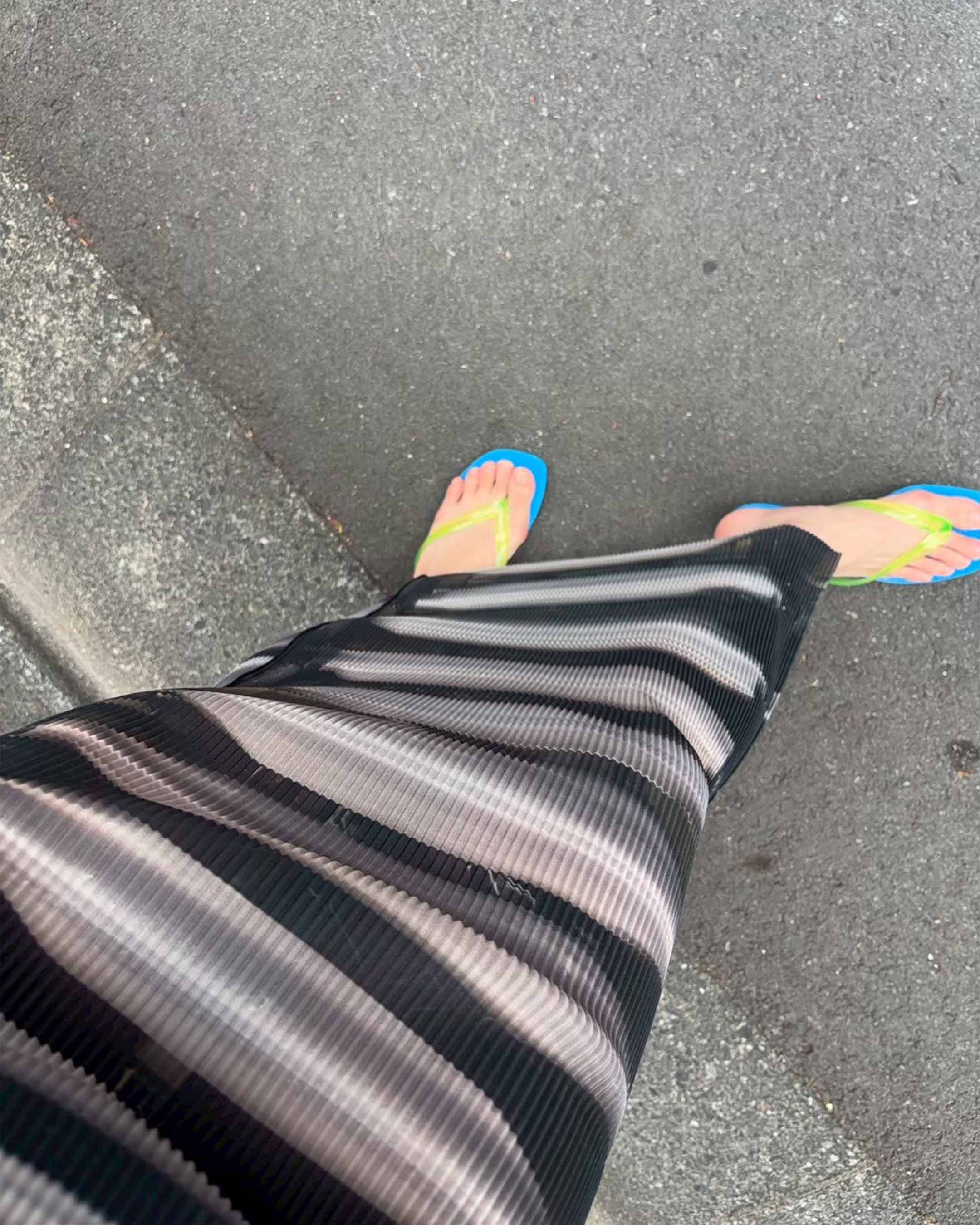 プリーツが消失することがありますので、着用・洗濯の際はご注意ください。プリーツ部分のアイロンのご使用は避けてください。シワが気になる際は、スチームで優しくうかしアイロンをしてください。