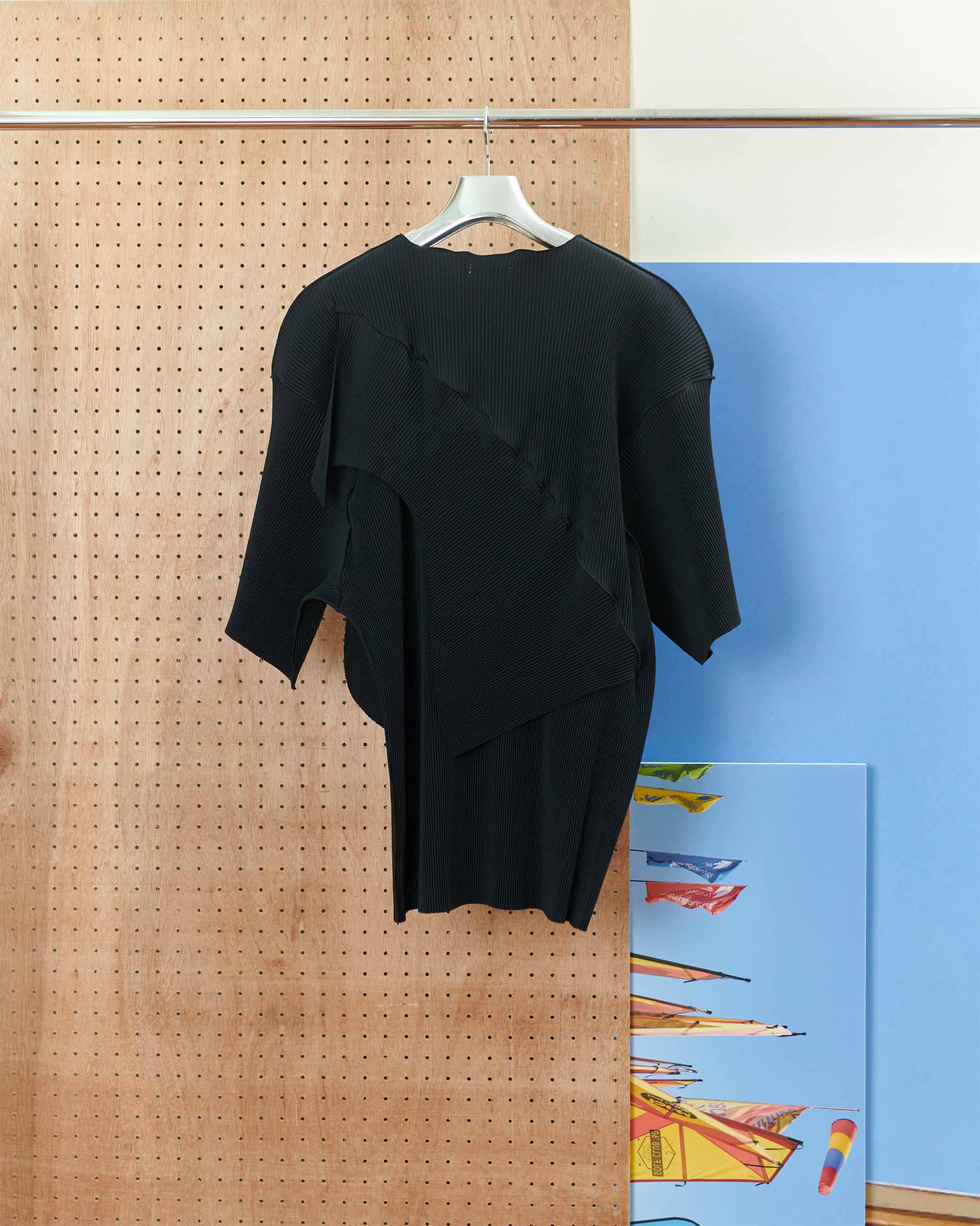 プリーツが消失することがありますので、着用・洗濯の際はご注意ください。プリーツ部分のアイロンのご使用は避けてください。シワが気になる際は、スチームで優しくうかしアイロンをしてください。