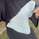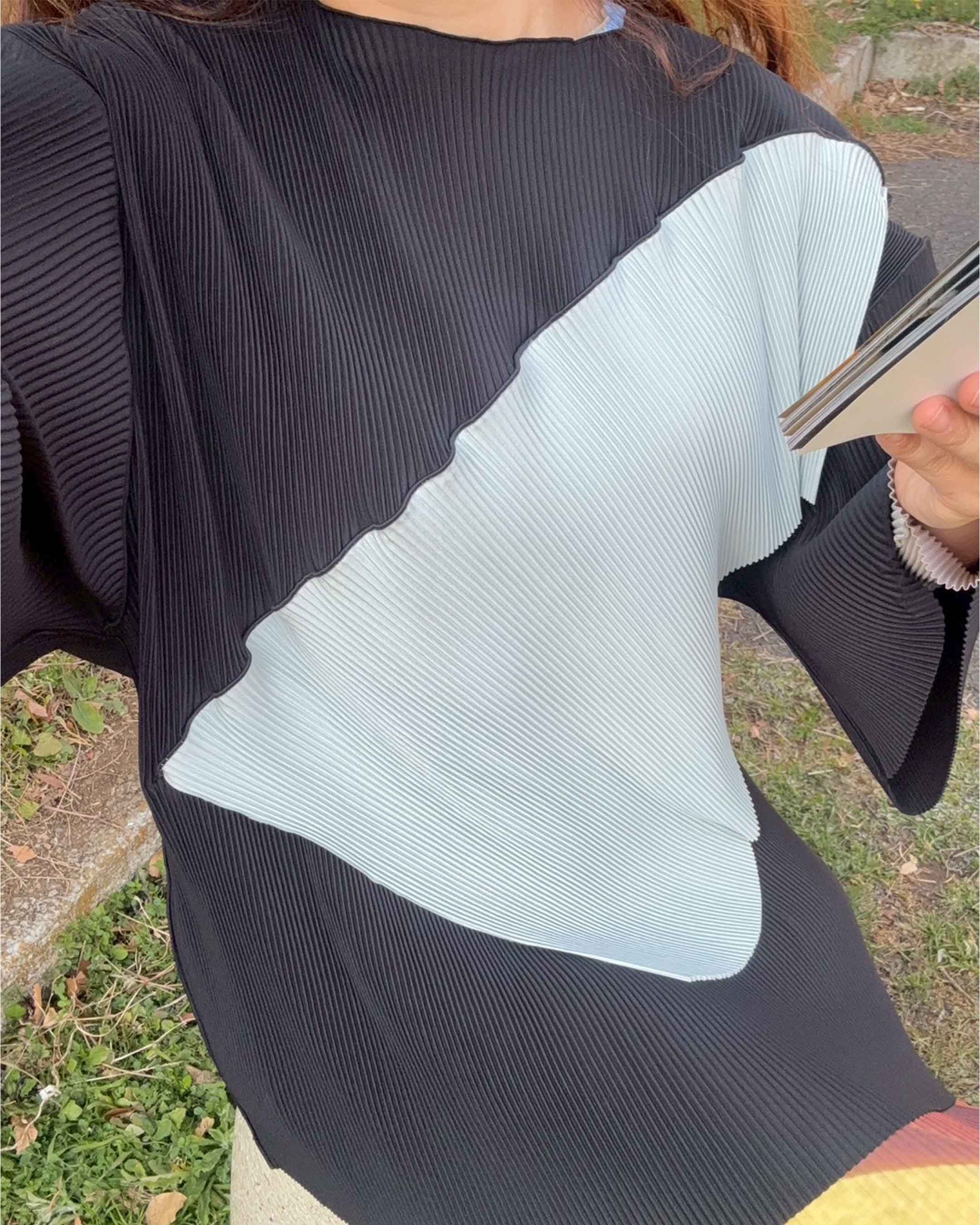 Made from recycled polyester sourced from collected plastic bottles. Pleated dense polyester, comfortable for any body shape. Wrinkle-resistant and quick-drying, perfect for travel and everyday wear.